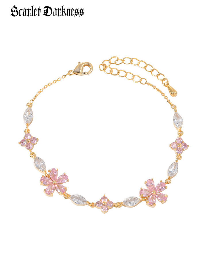 Scarlet Darkness Dainty Pink Flower Bracelet