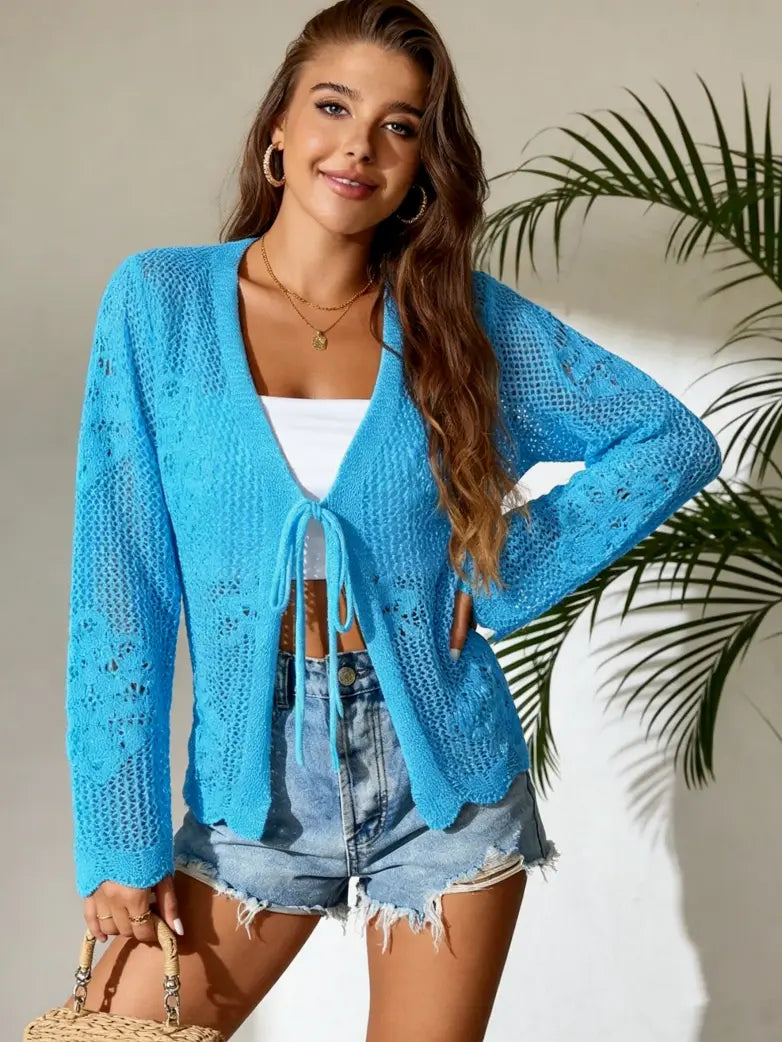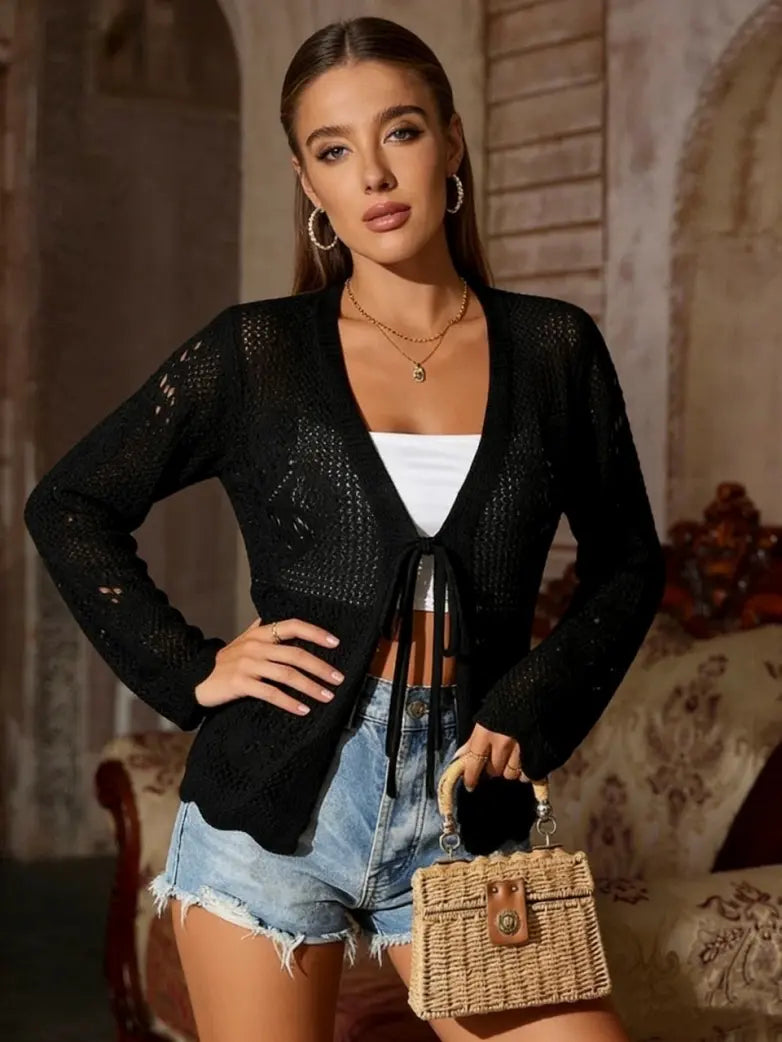 Women's Tie-Waist Casual Hollow-Out Cardigan