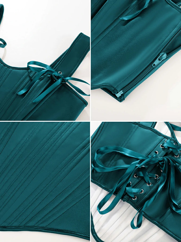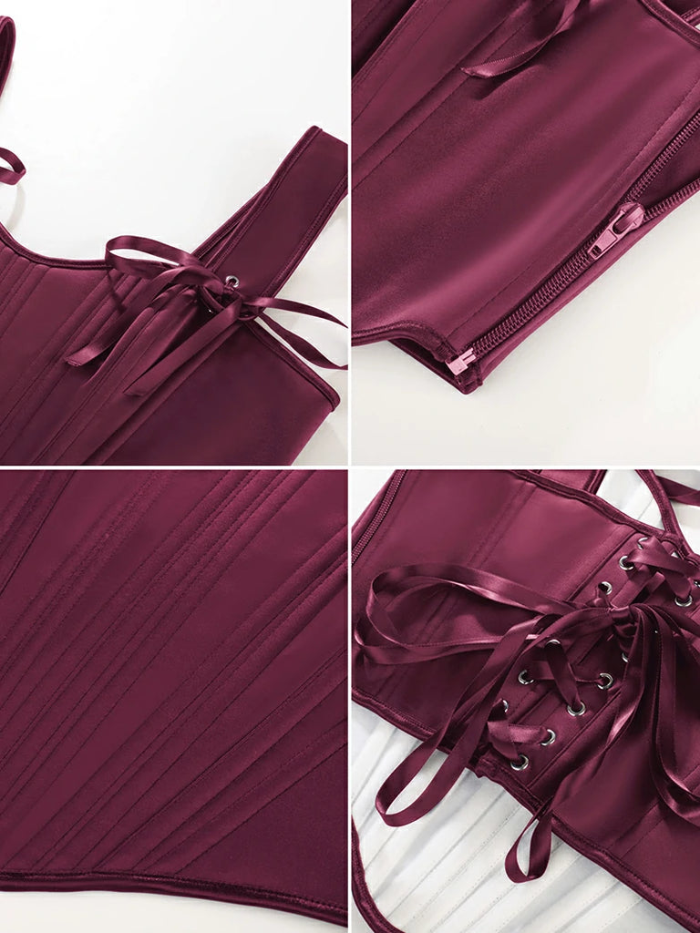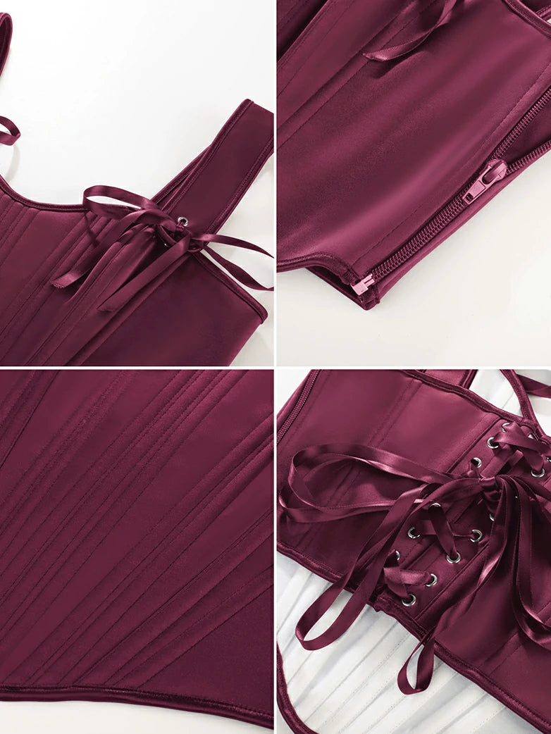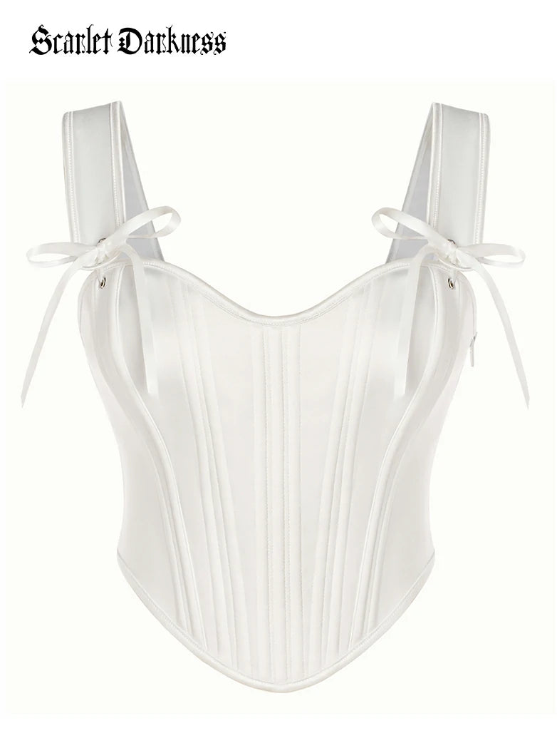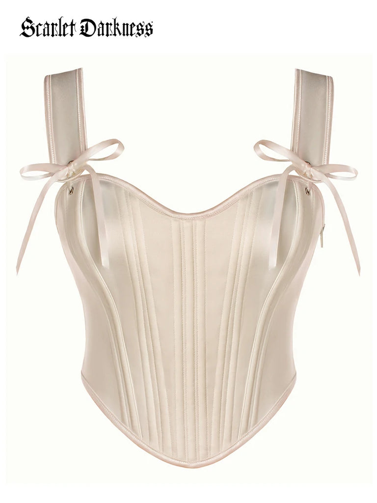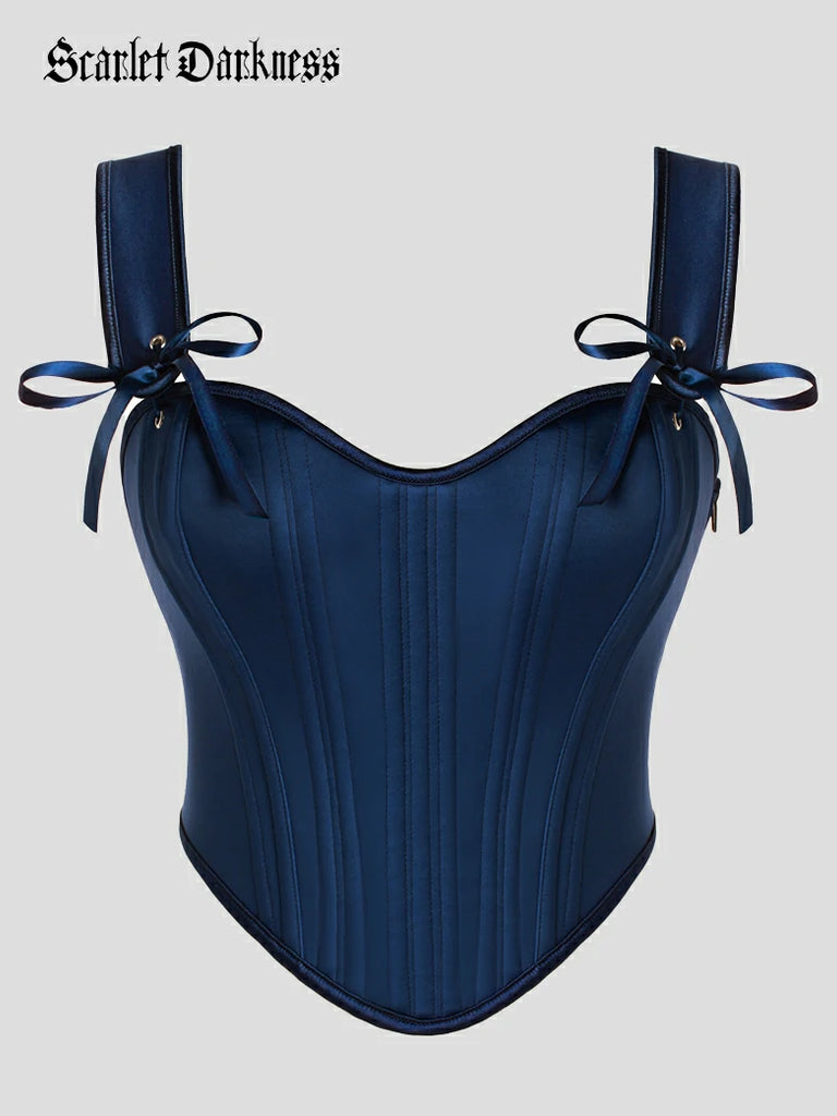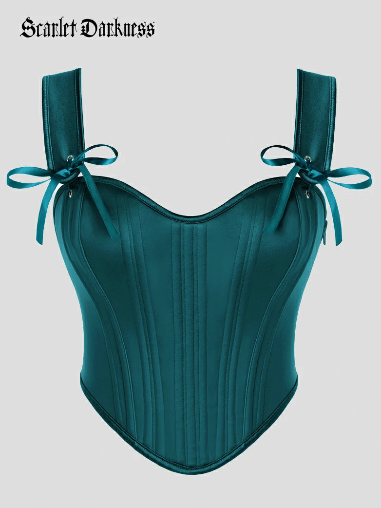 Scarlet Darkness Women Renaissance Satin Top Bustier Sweetheart Neck Lace-up Back Corset