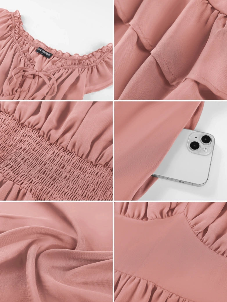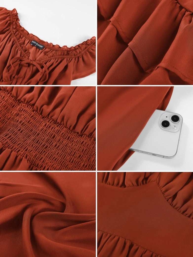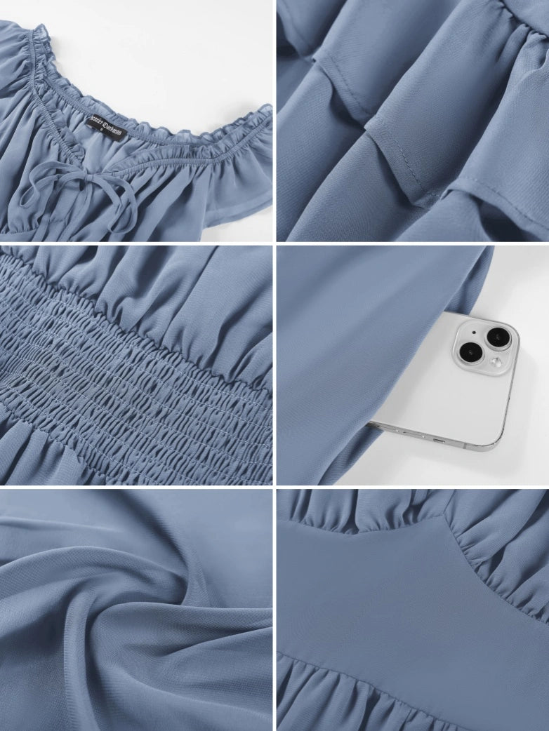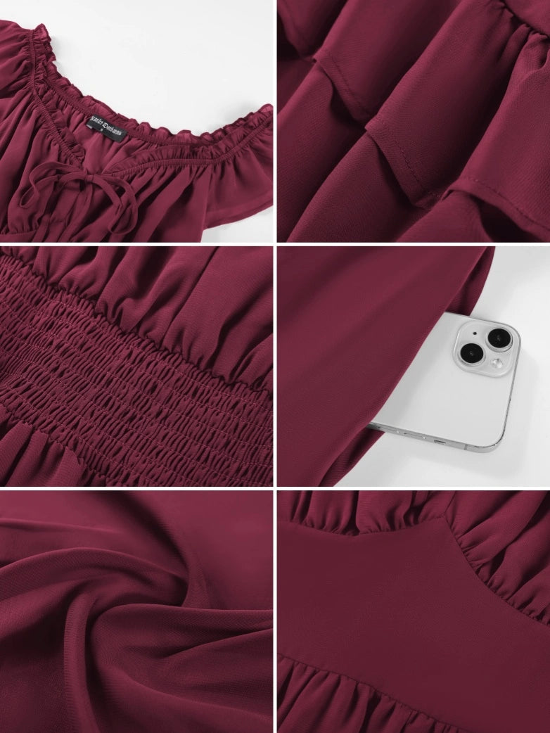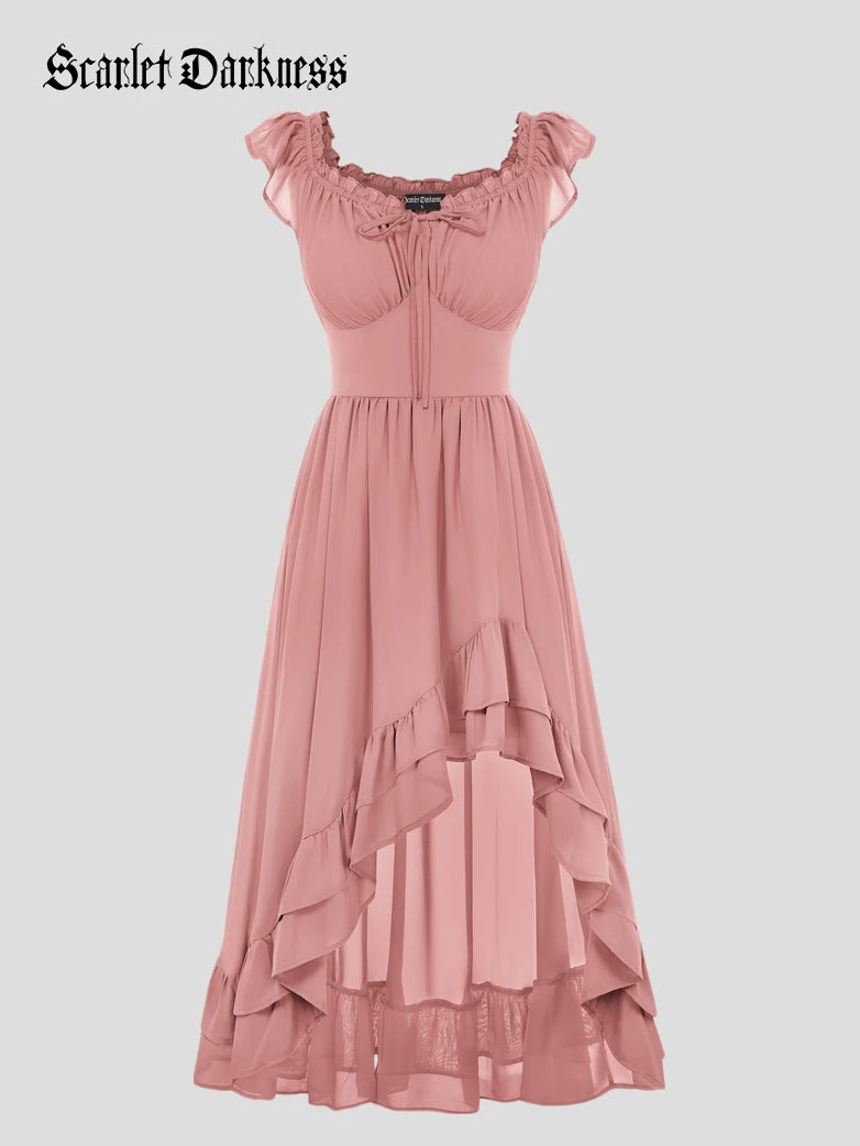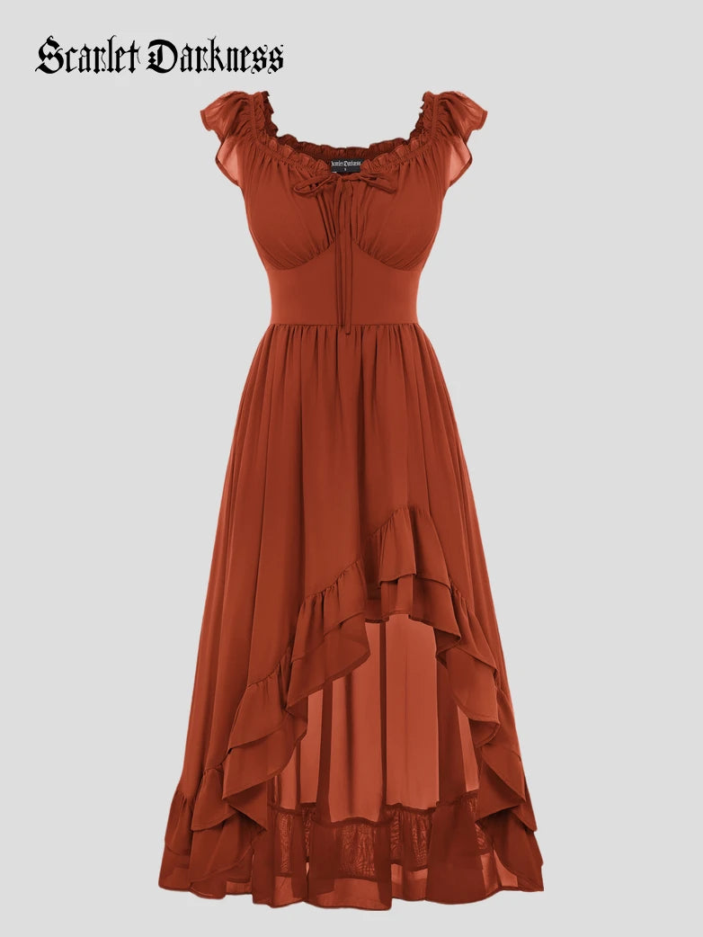Scarlet Darkness Women Renaissance High-Lo Chiffon Dress Elastic Waist Off Shoulder Pockets Dress
