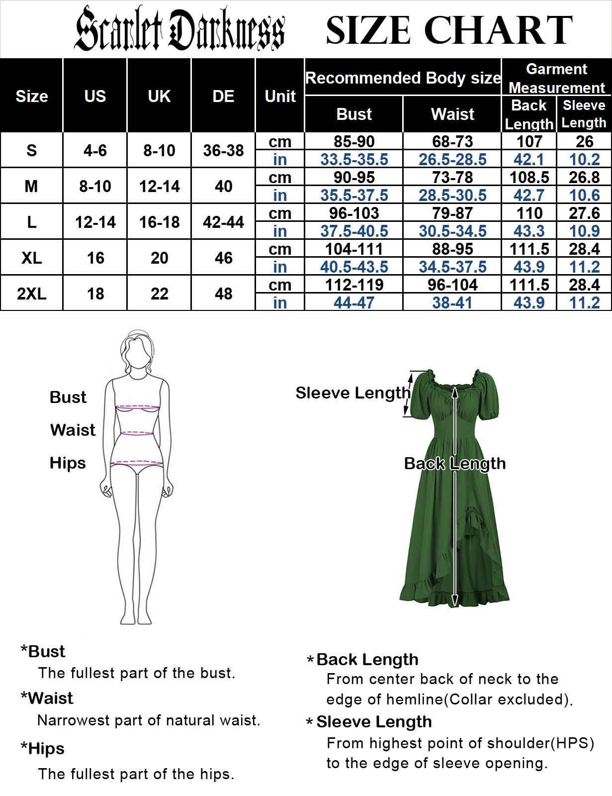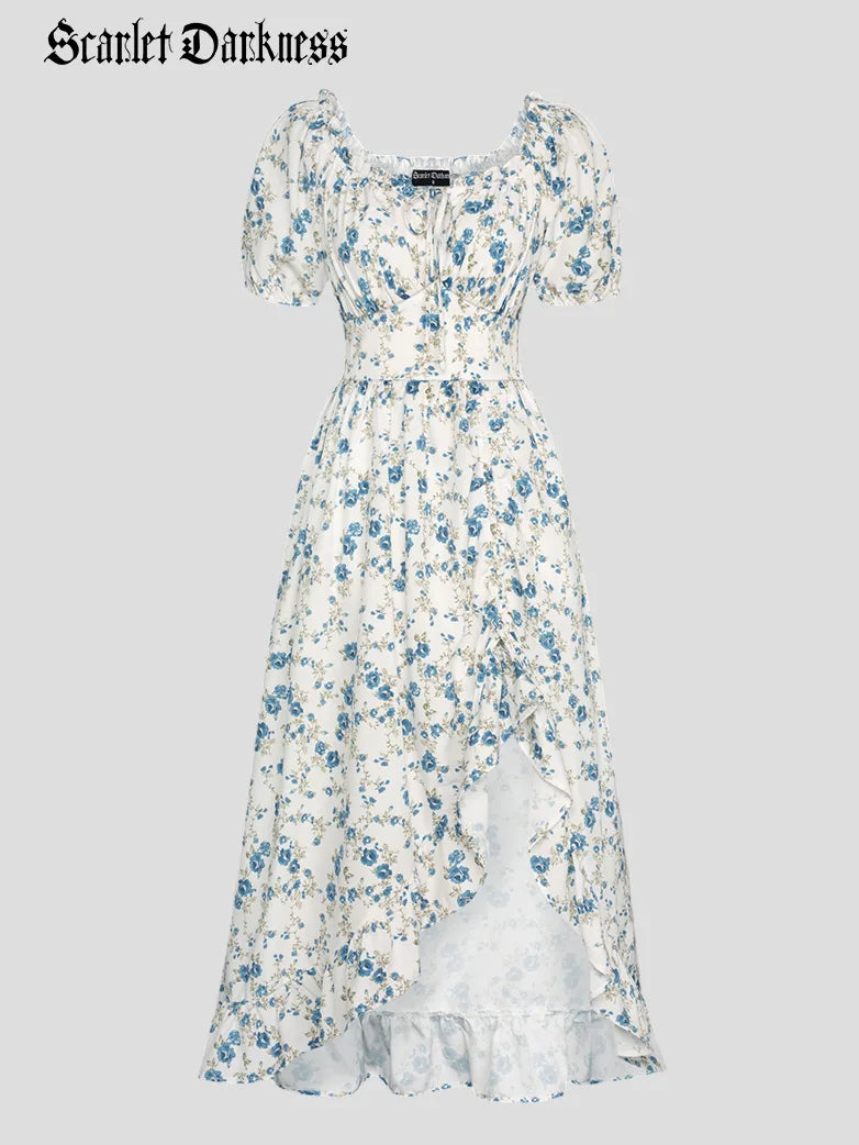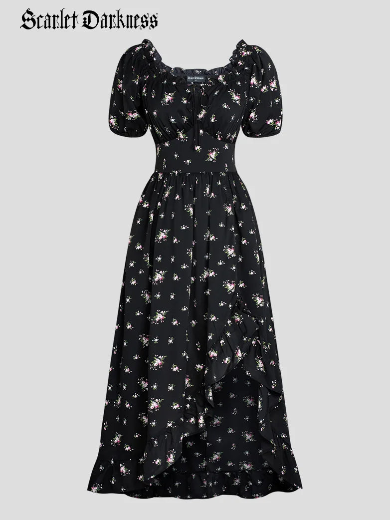 Scarlet Darkness Women Victorian Irregular Hem Puffy Dress
