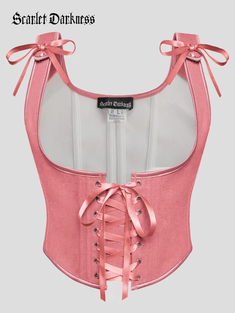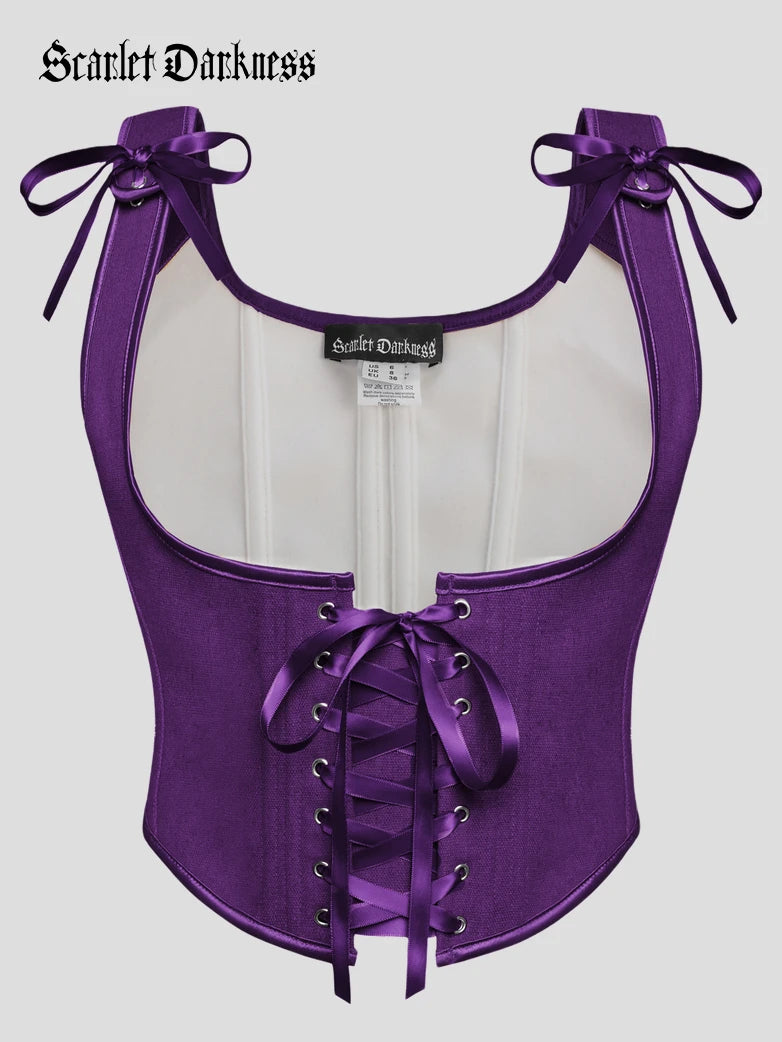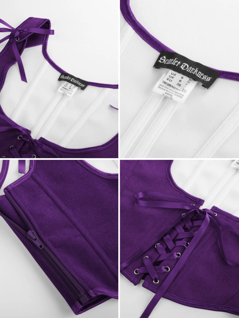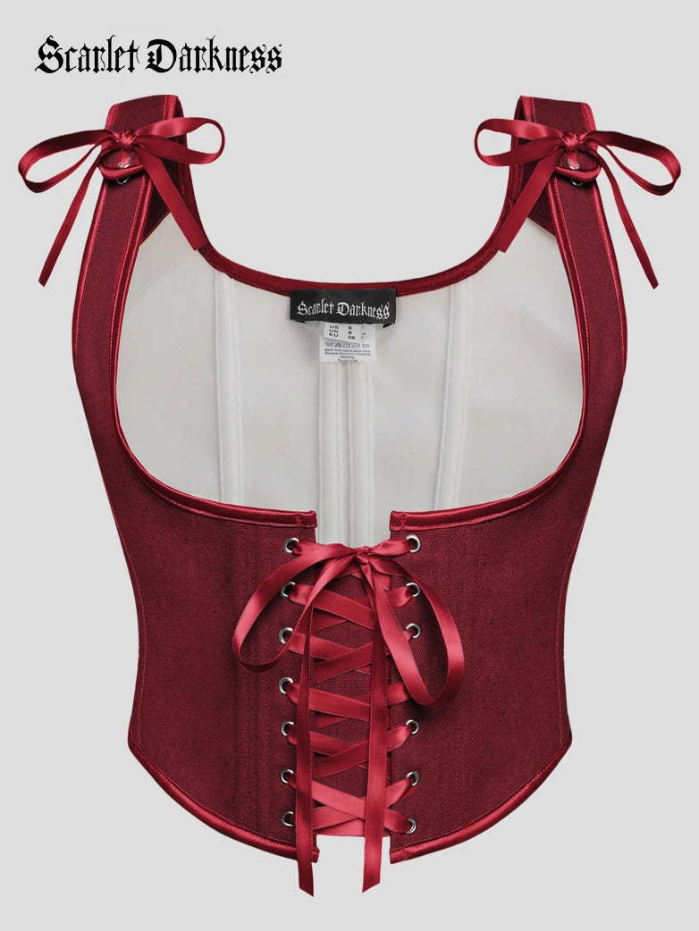 Scarlet Darkness Women Renaissance Lace-up Front Corset 11 Bones Under Bust Top Bustier