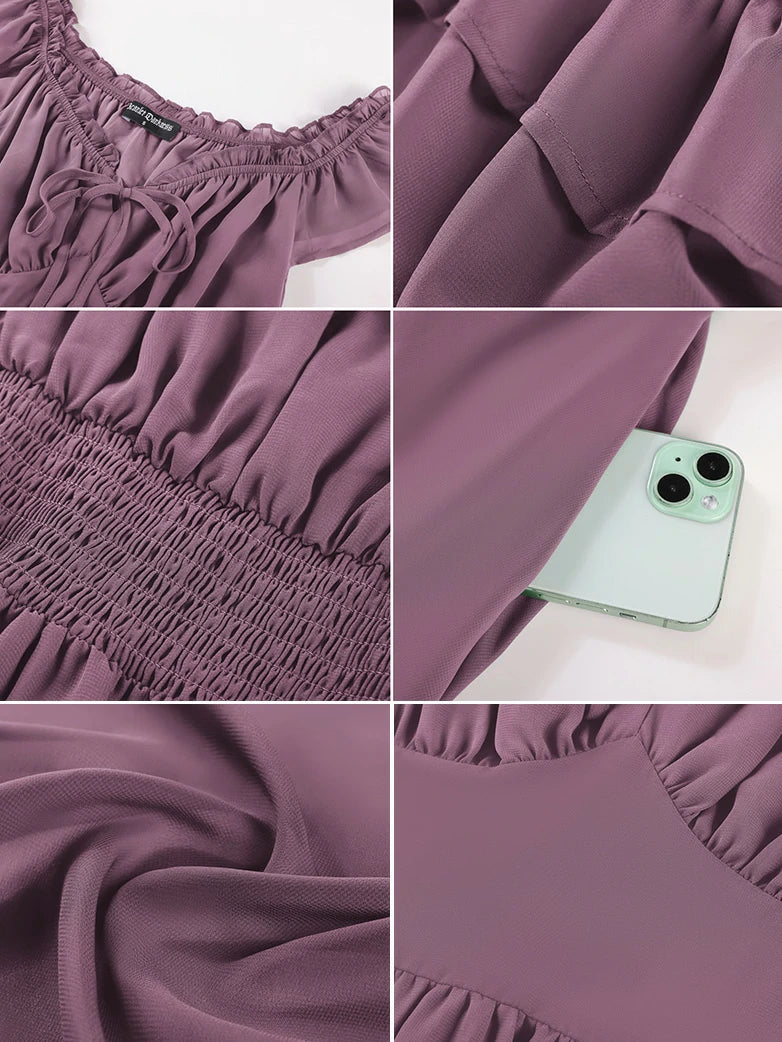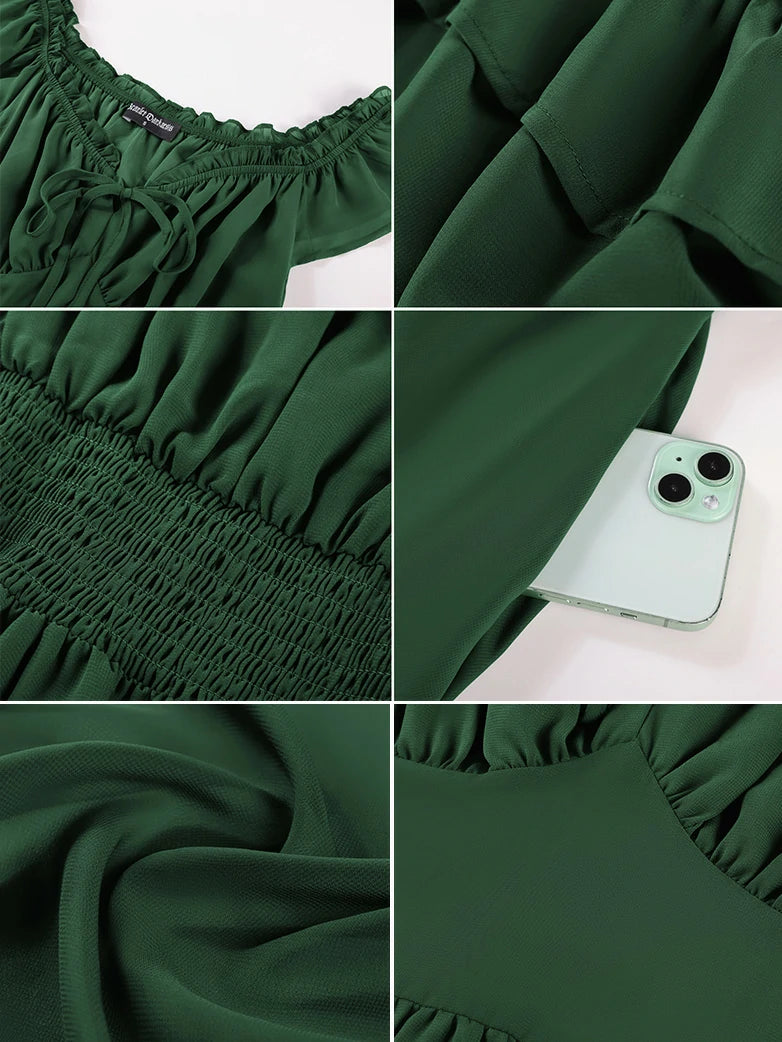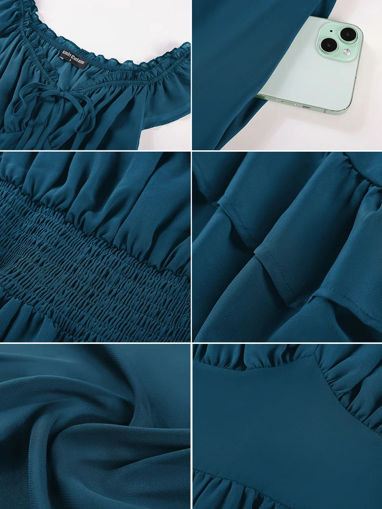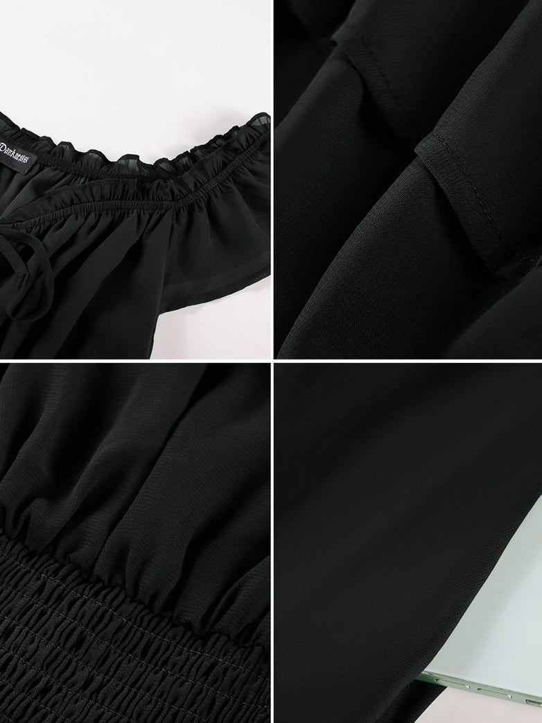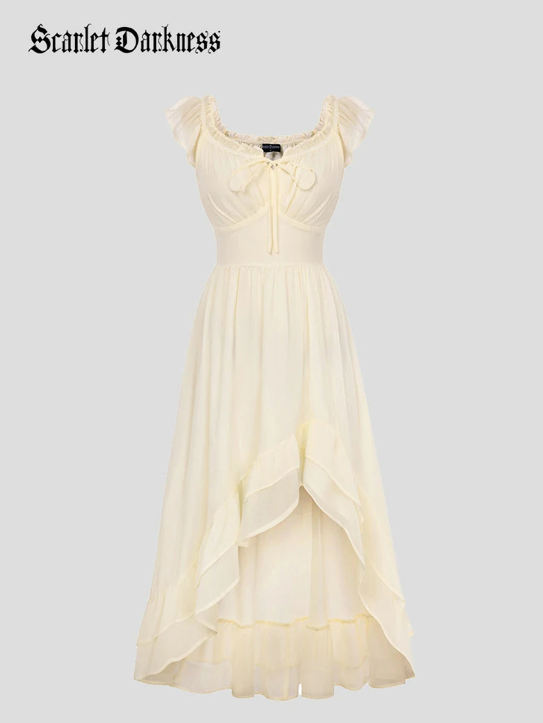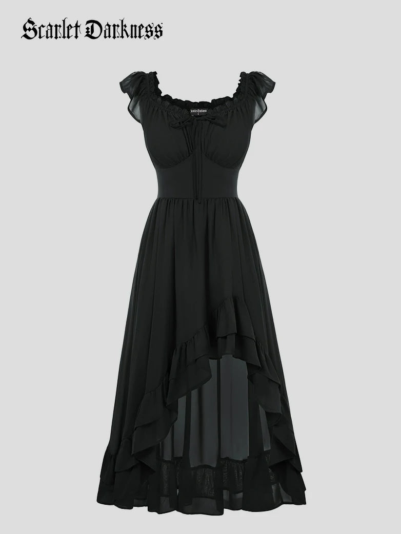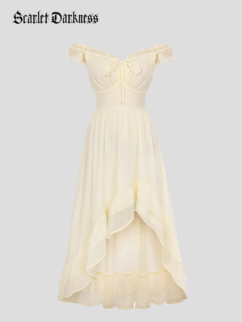 Scarlet Darkness Women Renaissance High-Lo Chiffon Dress Elastic Waist Off Shoulder Pockets Dress