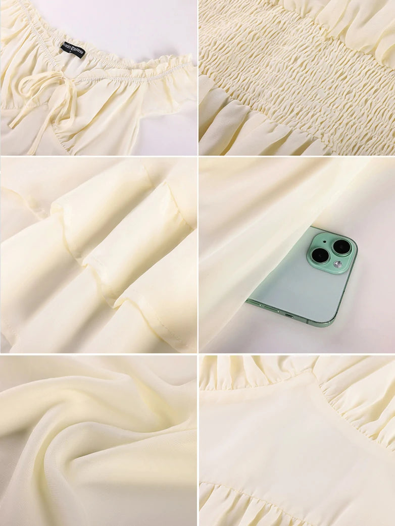 Inspired by bohemian artists, the dress's irregular hem symbolizes their breaking free and tearing apart of their skirts, while the layered design creates a natural sense of flow. Wearing it exudes a strong sense of freedom and unrestrained spirit.