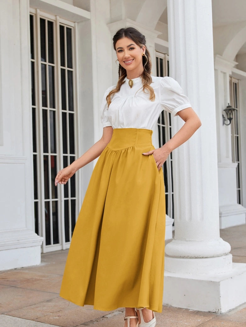 Renaissance Elastic Waist Swing Skirt with Pockets