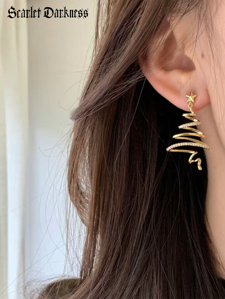 Multi-layered Wrapped Star Christmas Tree Earrings