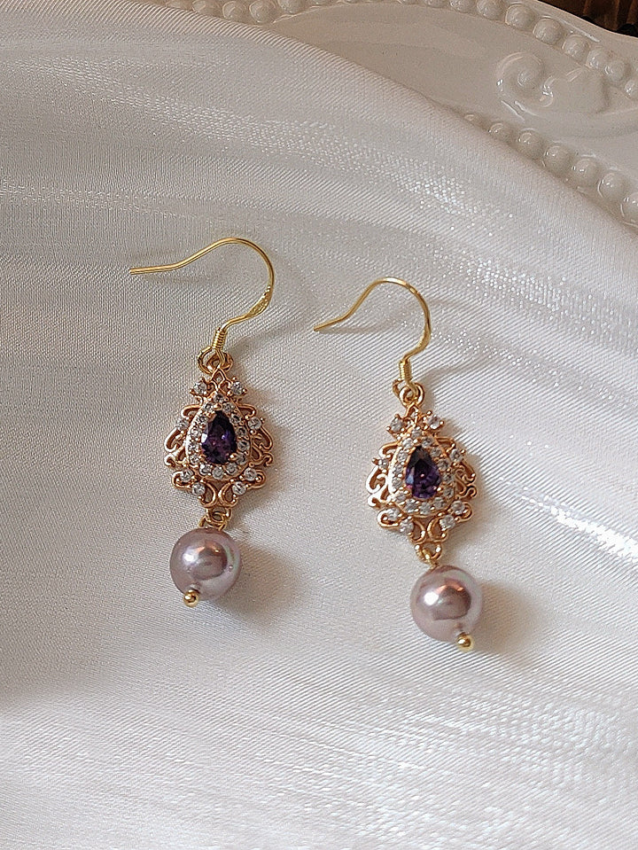 Opulent, romantic, and timeless—these Baroque Style Purple Pendant Teardrop Pearl Earrings blend rich amethyst‑tone accents with classic pearl drops for elegance.