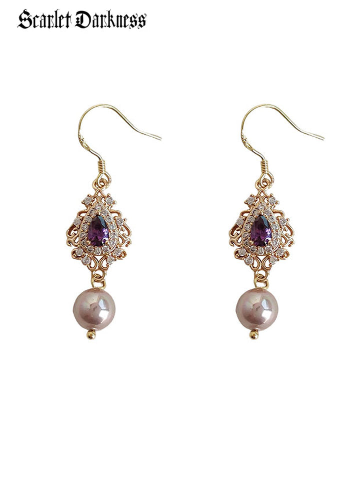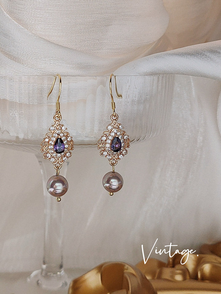 Scarlet Darkness Vintage Purple Pendant Teardrop Pearl Earrings