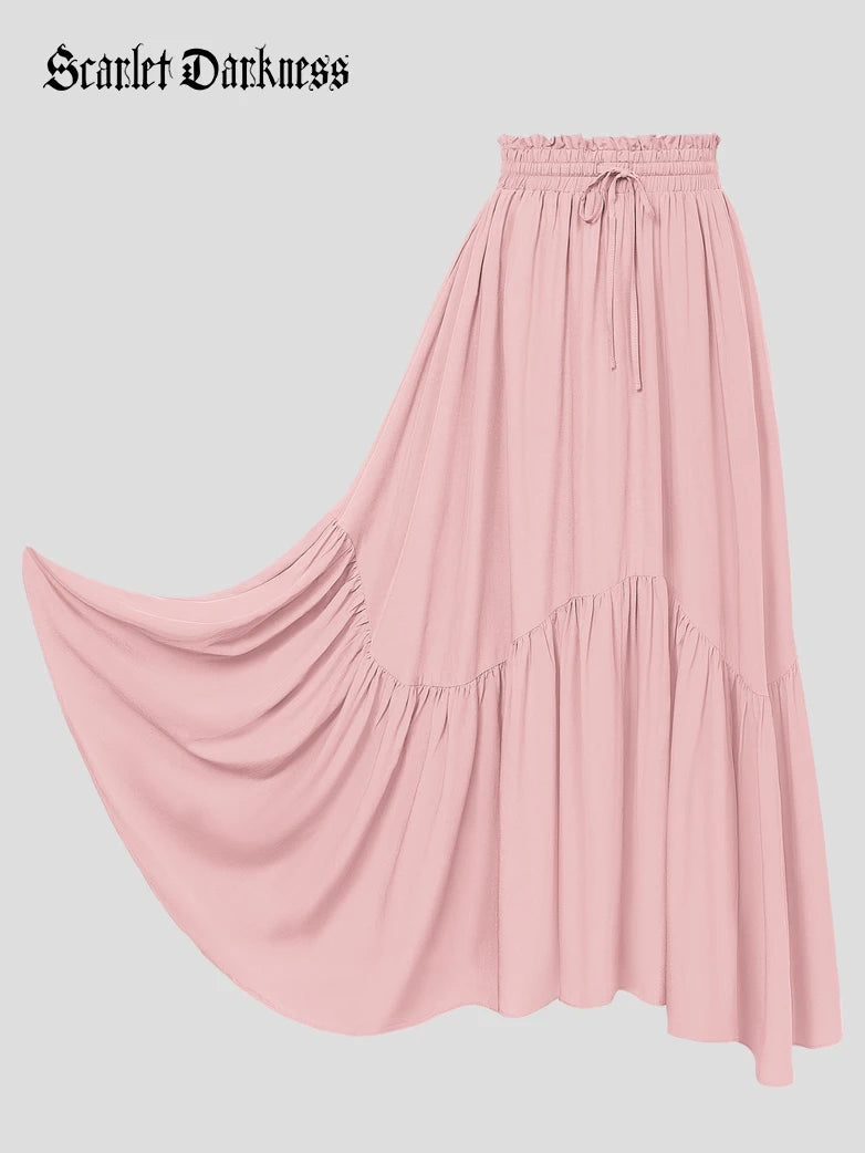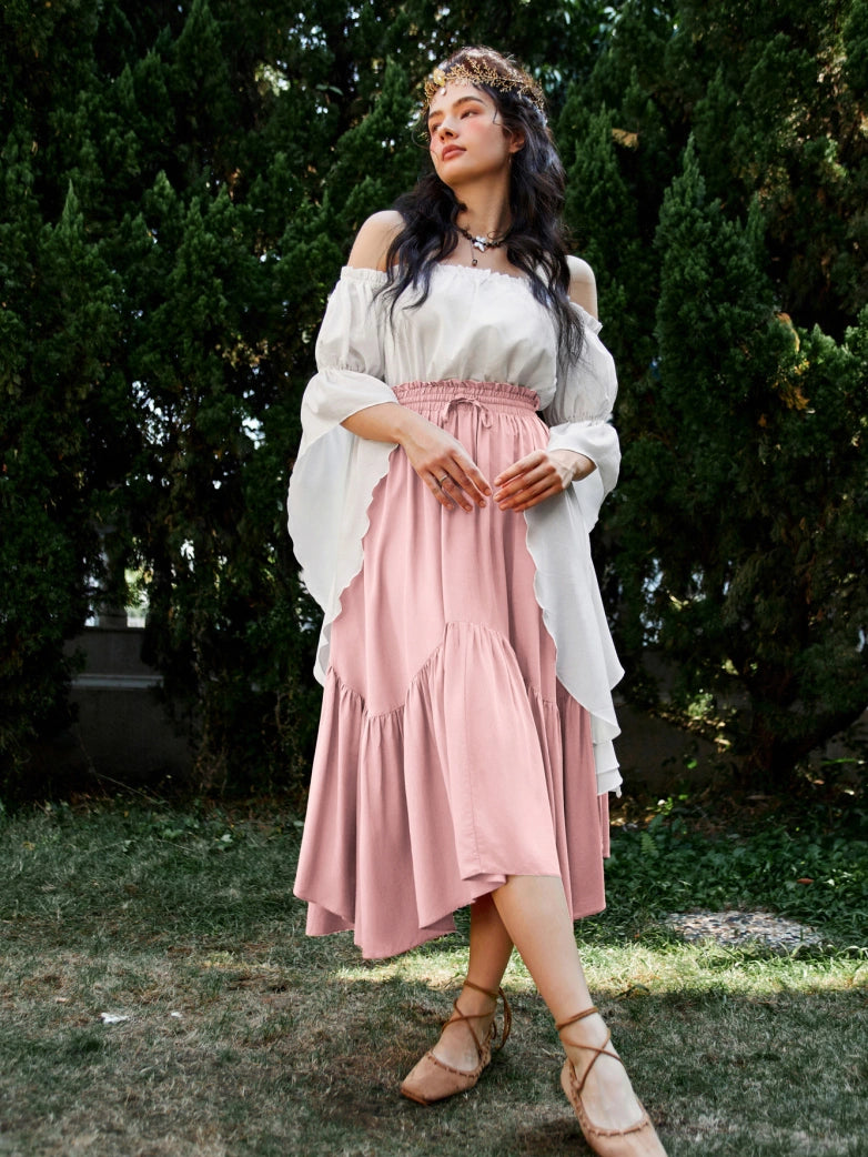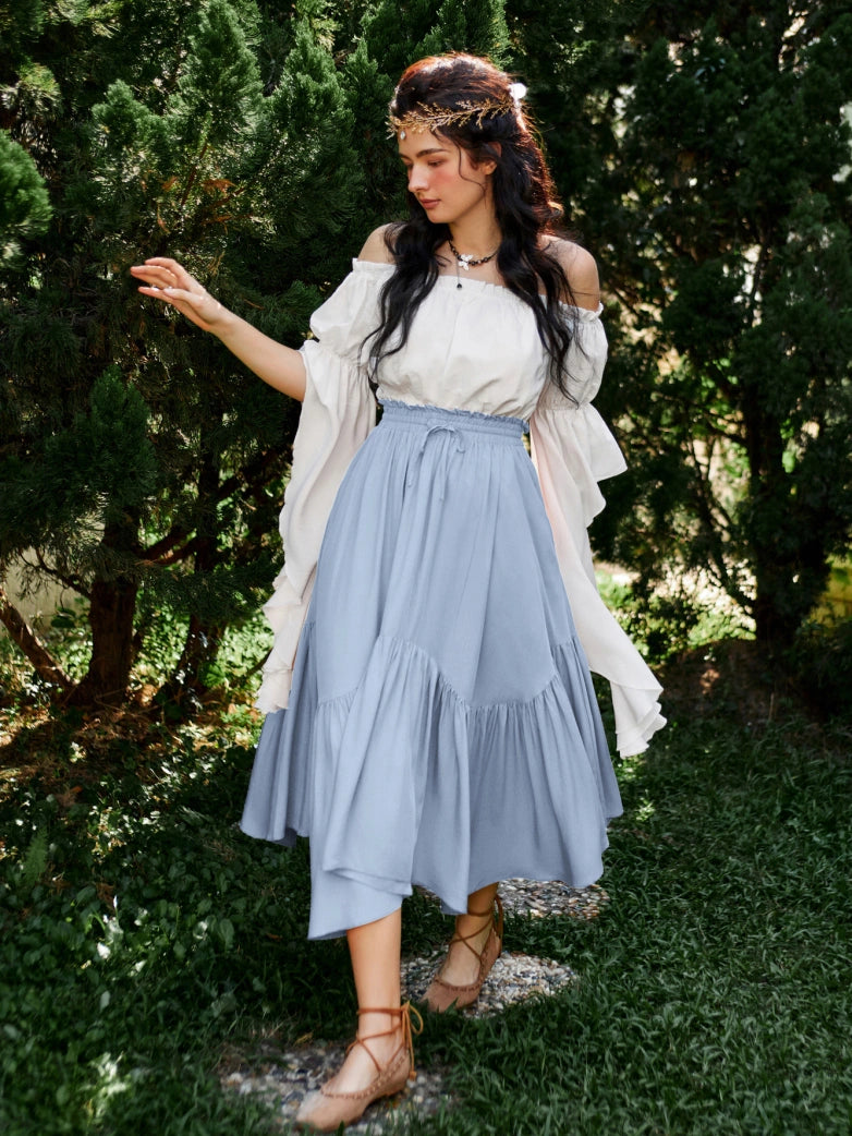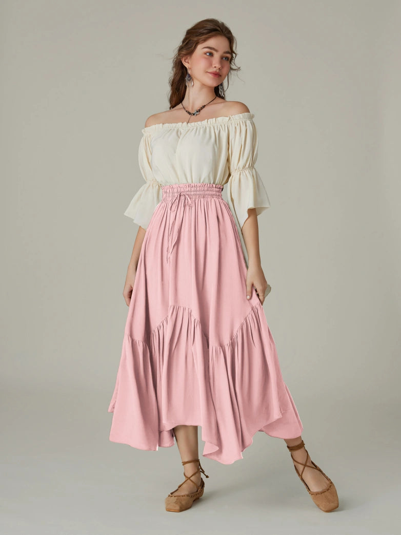 Elastic Waist Flared Renaissance Skirt with Pockets