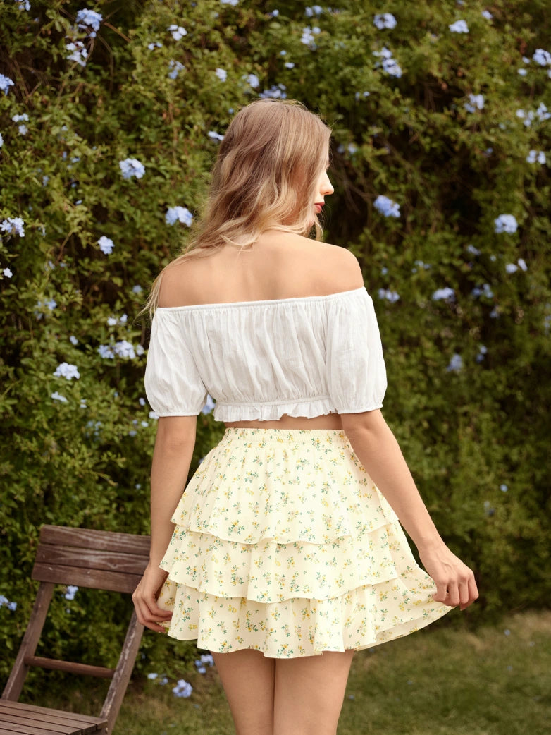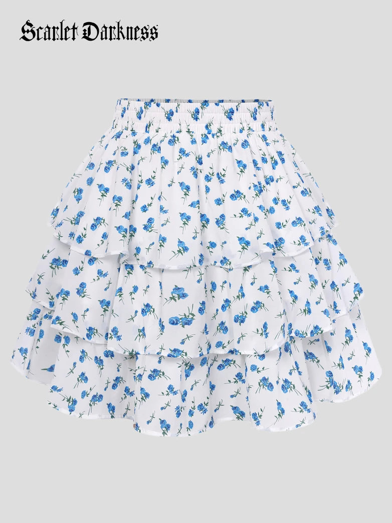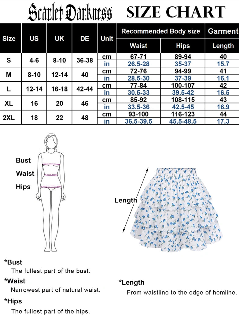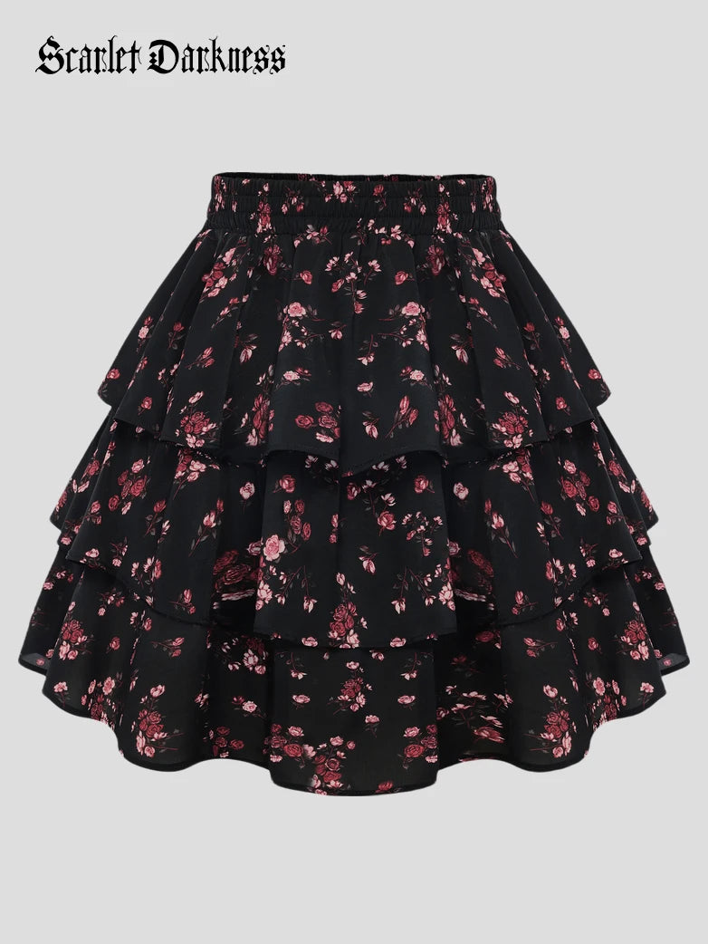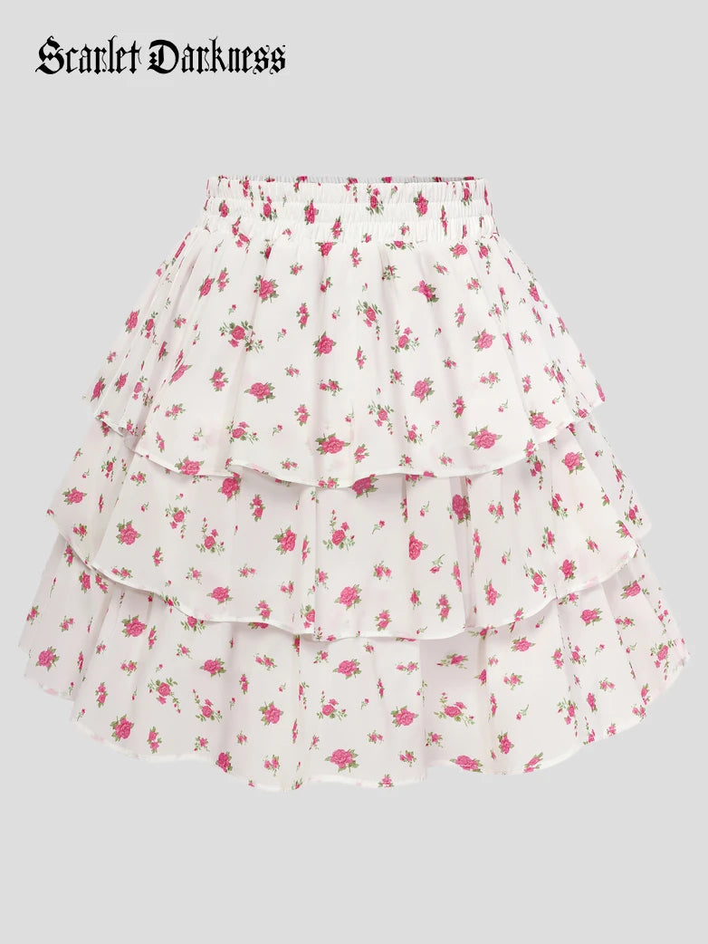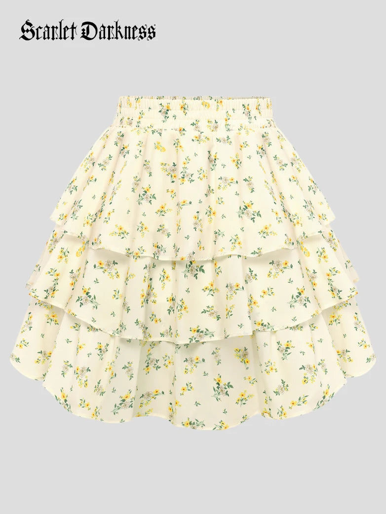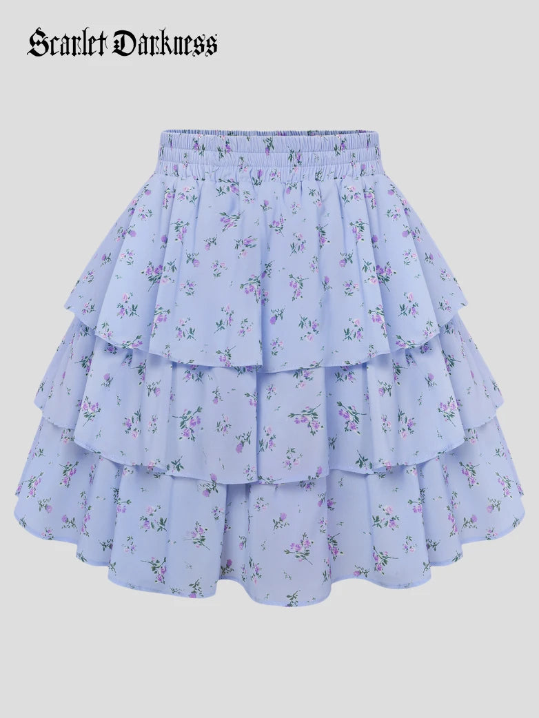 Scarlet Darkness Women Renaissance Chiffon Cake Mini Skirt Elastic Waist Mid-Thigh A-Line Skirt