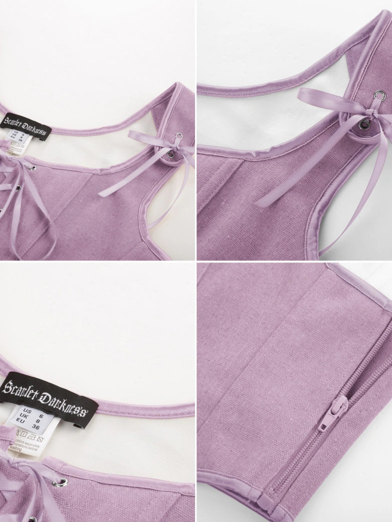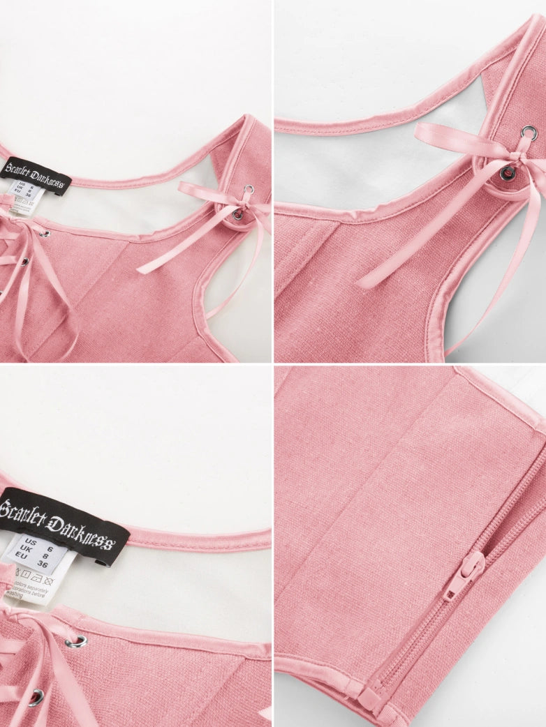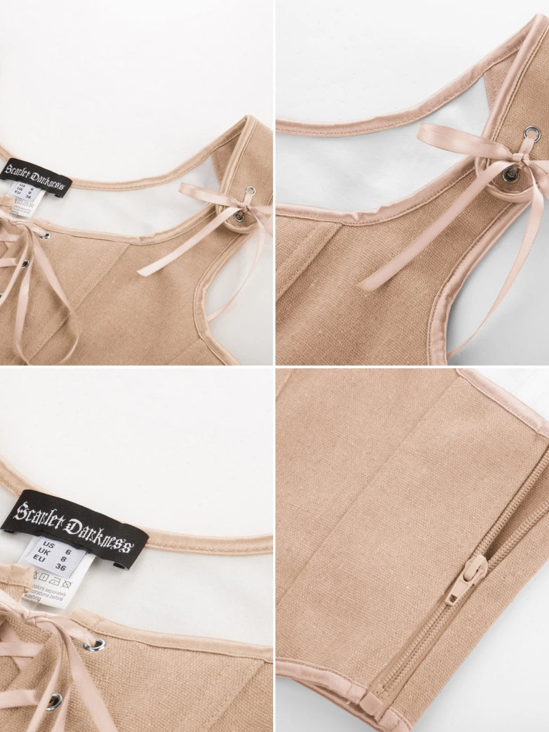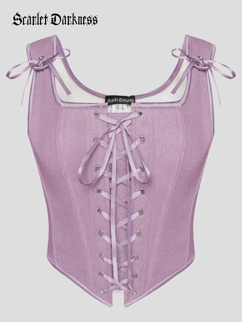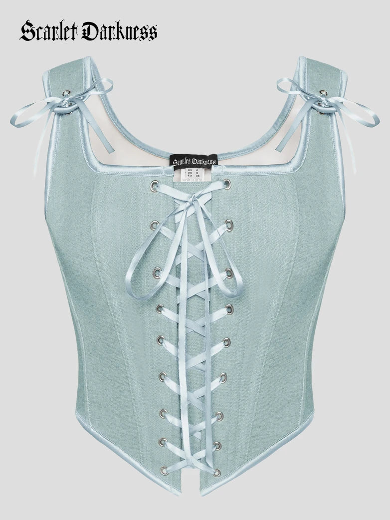 Scarlet Darkness Women Renaissance Tie-Shoulder Corset 12 Bones Square Neck Lace-up Front Vest