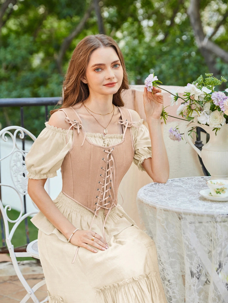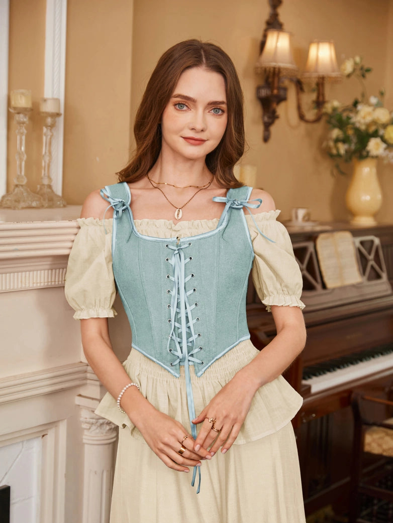 Classic Renaissance Corset with Tie-Shoulder and Bones