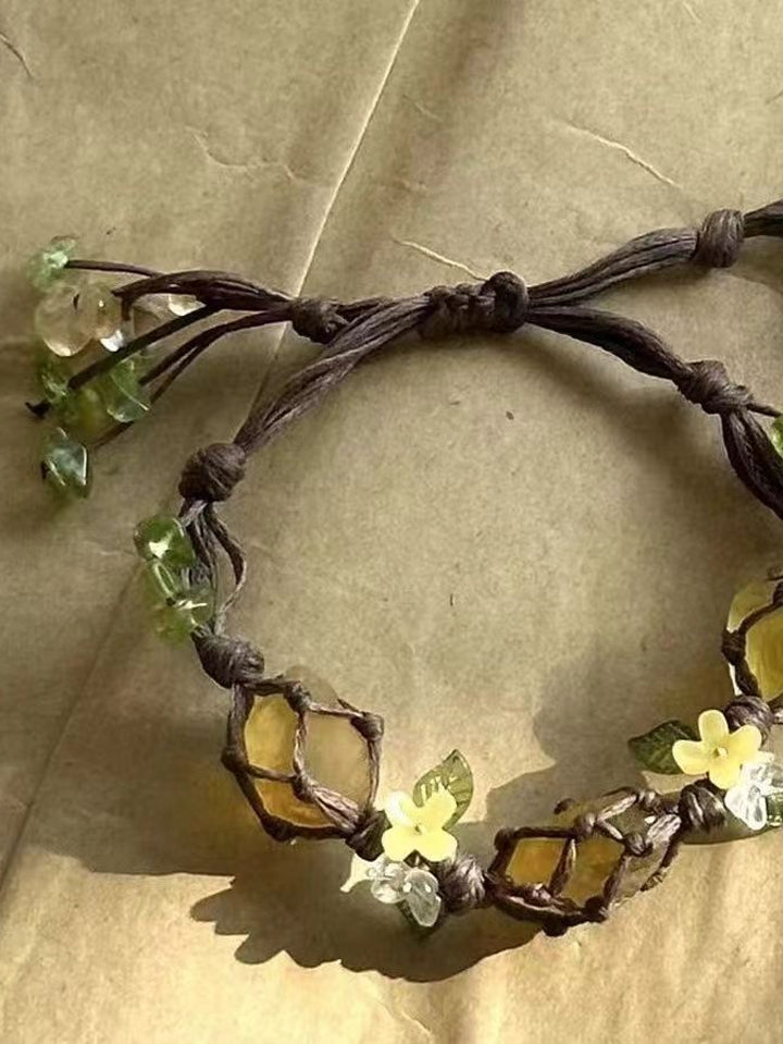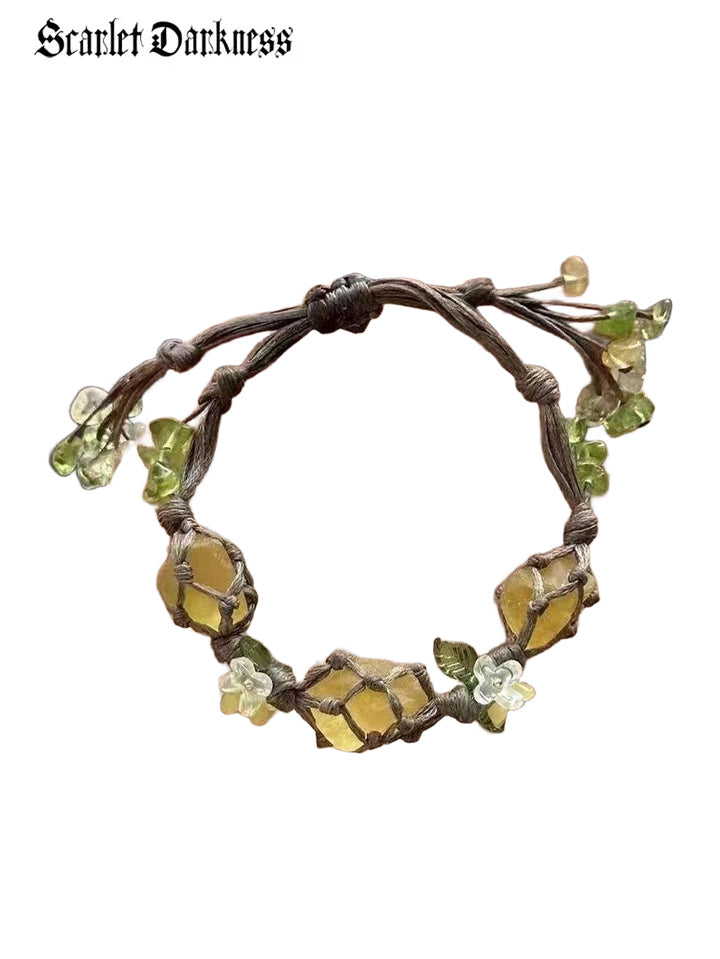 Scarlet Darkness Osmanthus Fragrans Elf Forest Floral Vine Yellow Braided Rope Bracelet