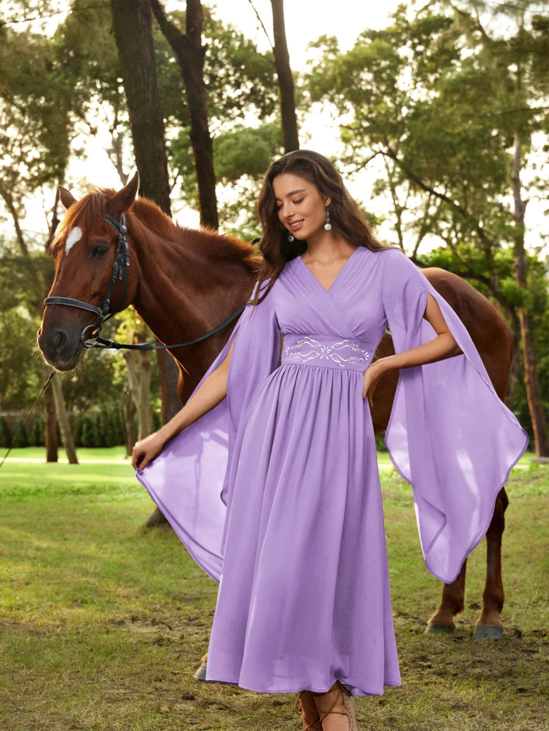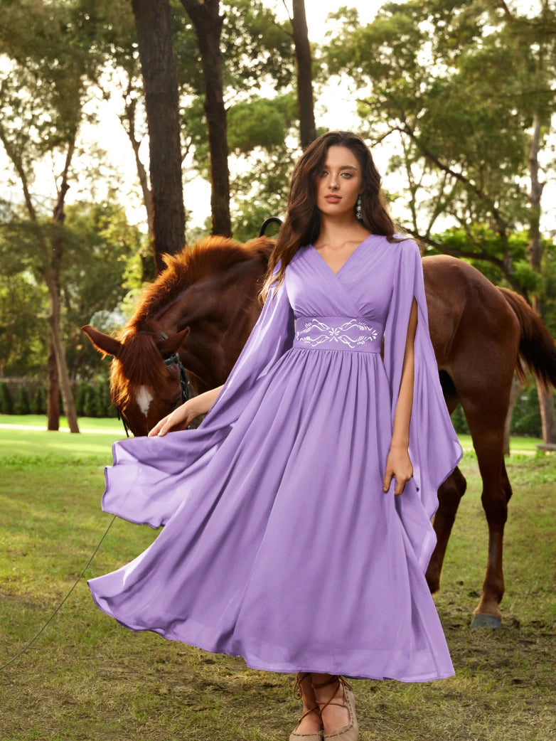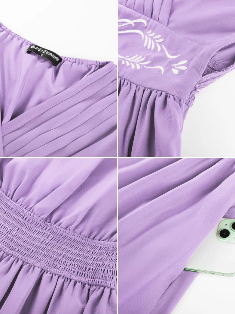 Renaissance Purple Embroidered Chiffon Pockets Dress