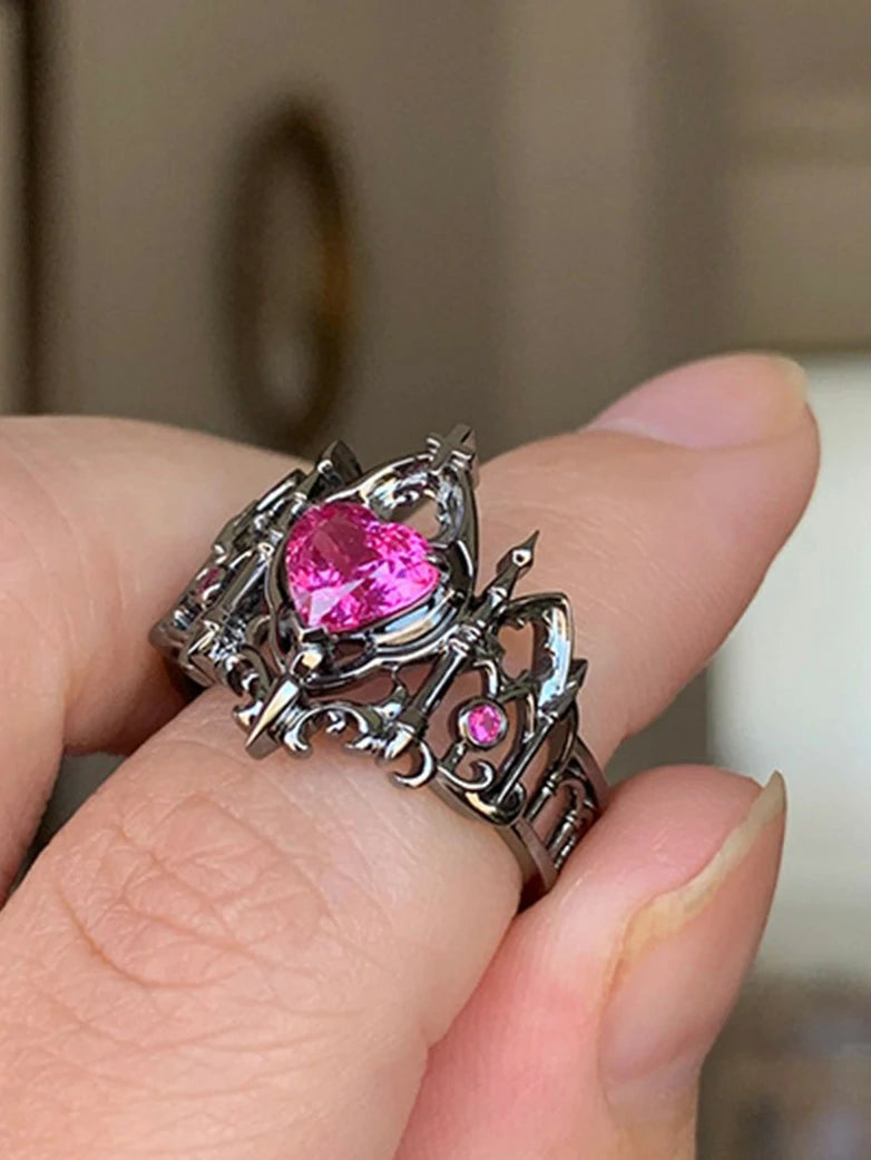 Elevate every look with a blend of gothic romance and modern elegance. This crown-inspired open ring showcases a brilliant pink diamond–look centerpiece that catches the light from every angle. Its open-band silhouette offers a comfortable, slightly adjustable fit, making it perfect as a statement ring or a chic stacking piece. Whether you lean into alternative fashion, romantic goth aesthetics, or simply want a touch of regal sparkle, this tiara-style ring adds instant allure to any outfit.