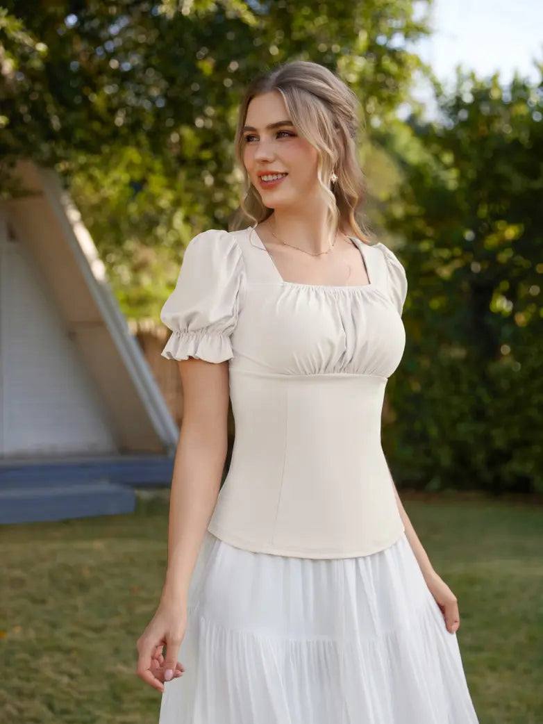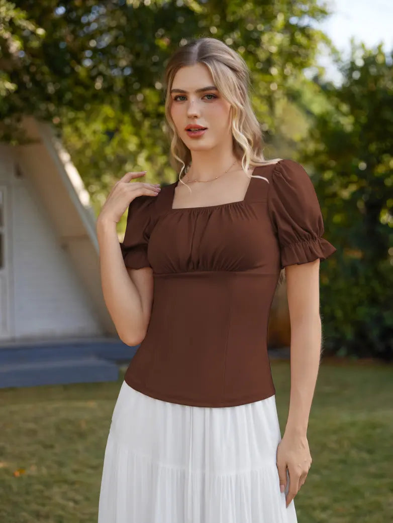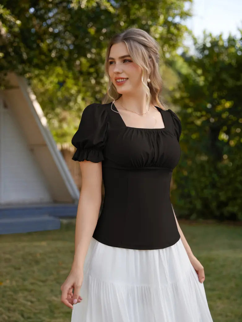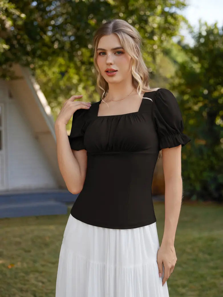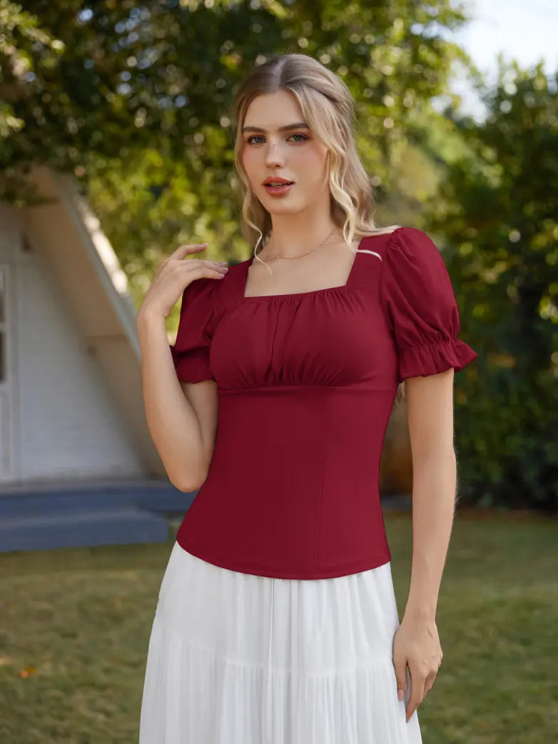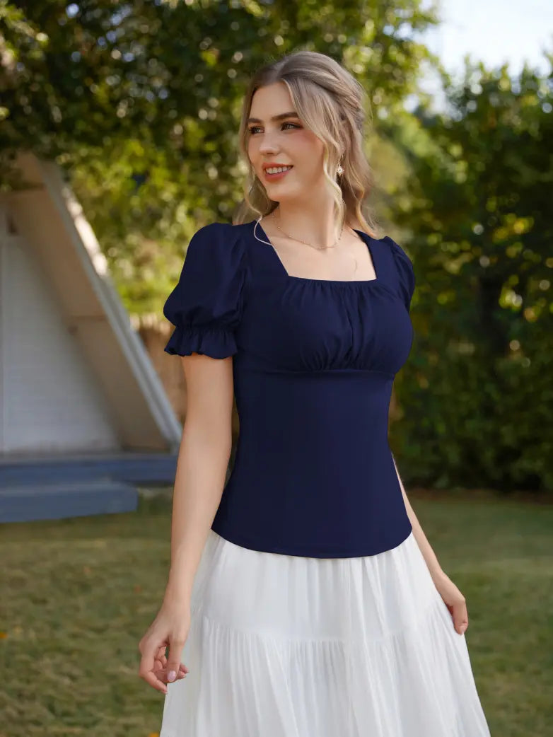 Victorian Pleated Ruched Slim Fit Short Sleeve Tops