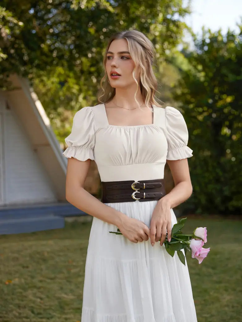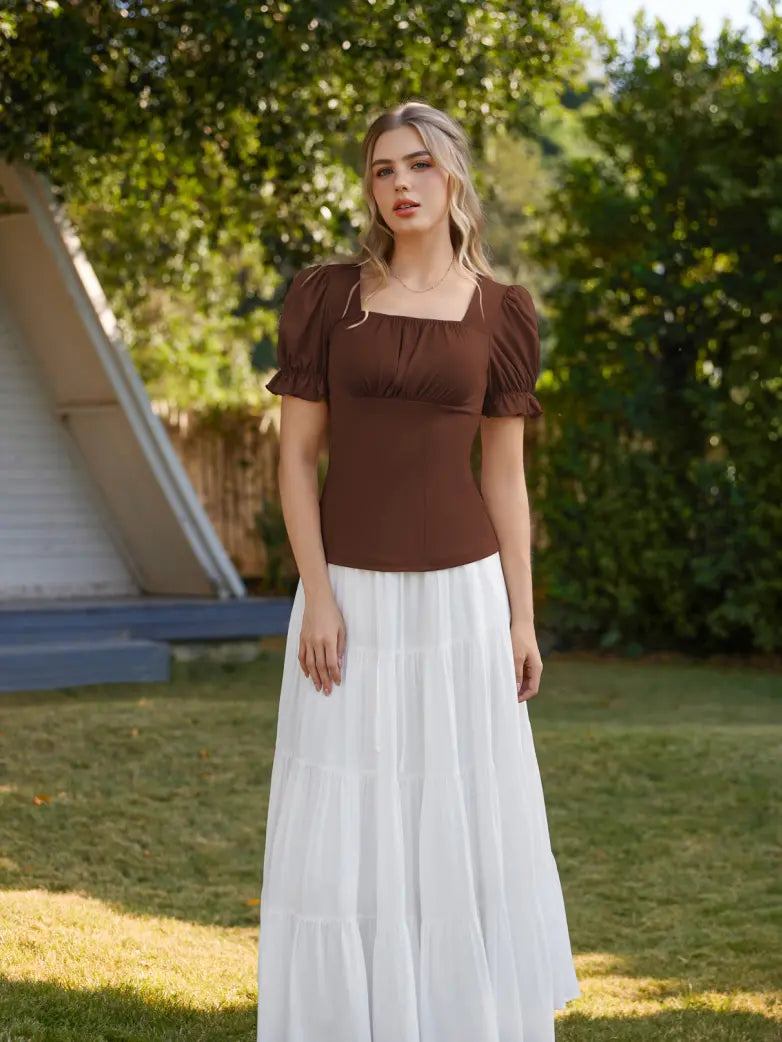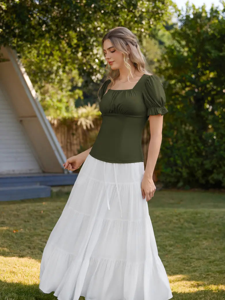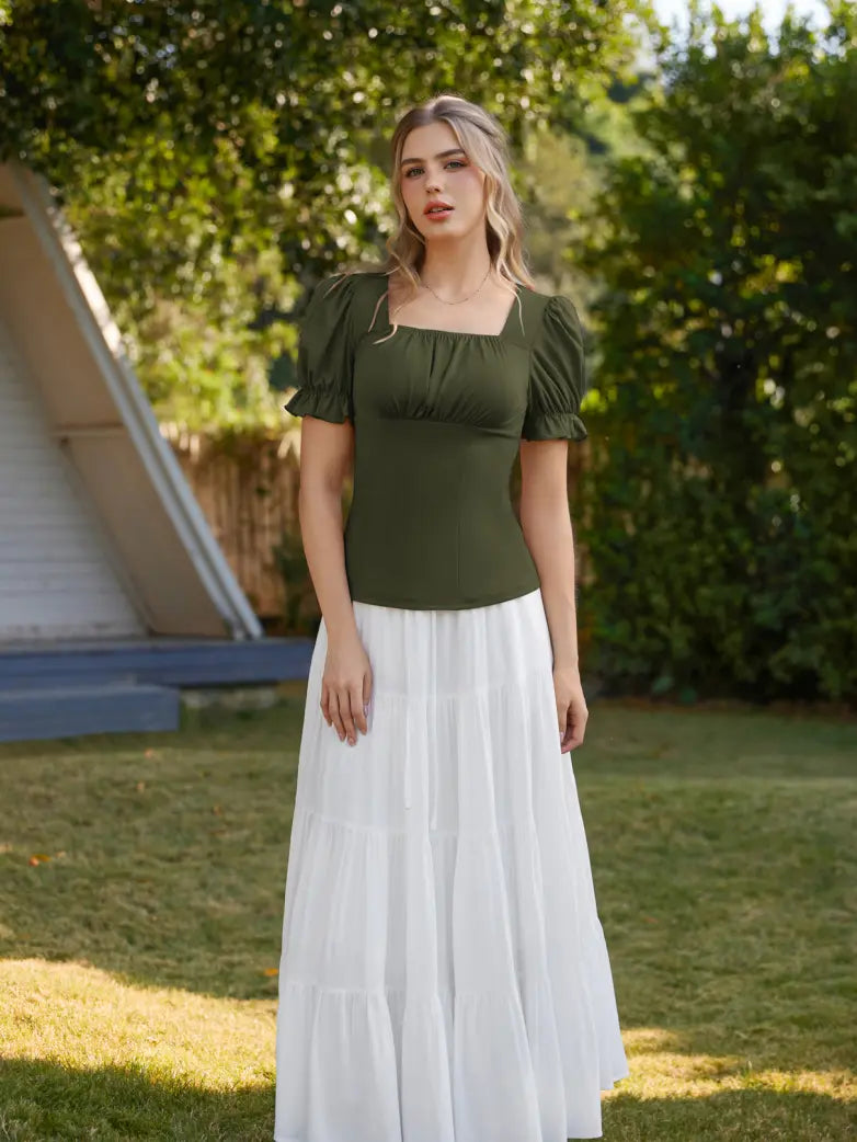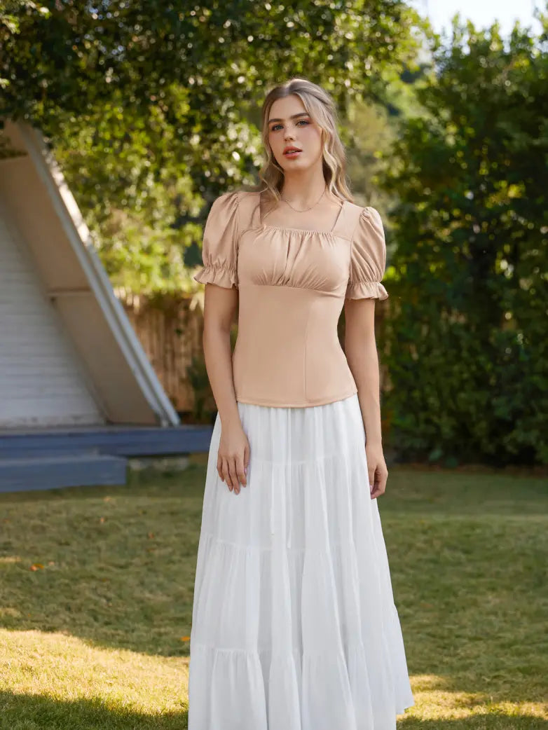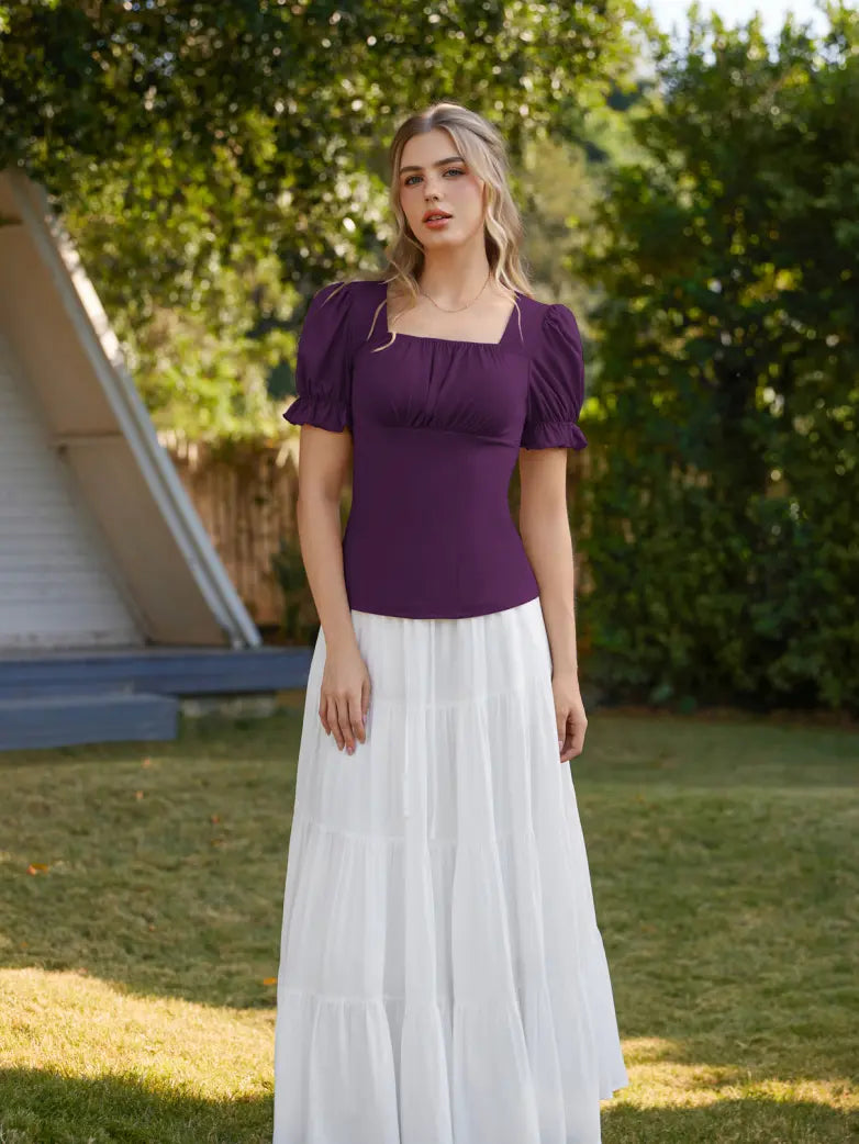 Victorian Pleated Ruched Slim Fit Short Sleeve Tops