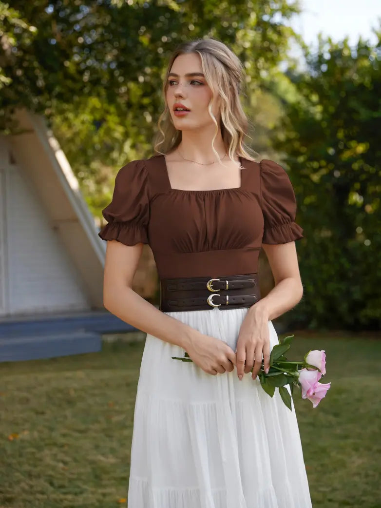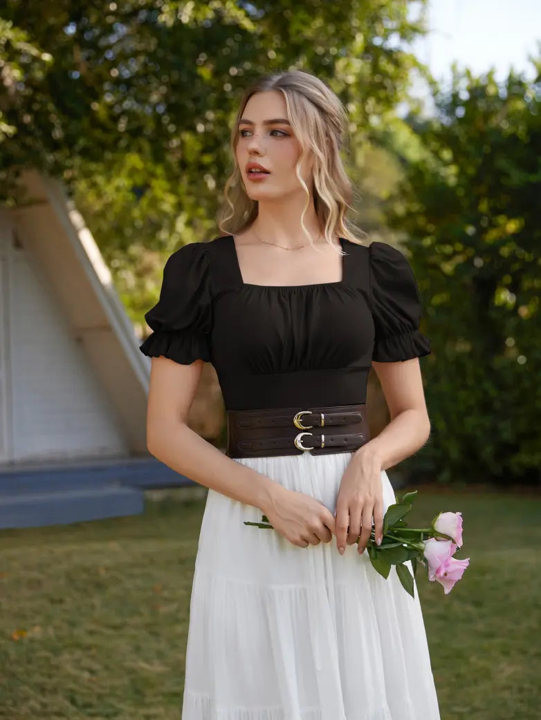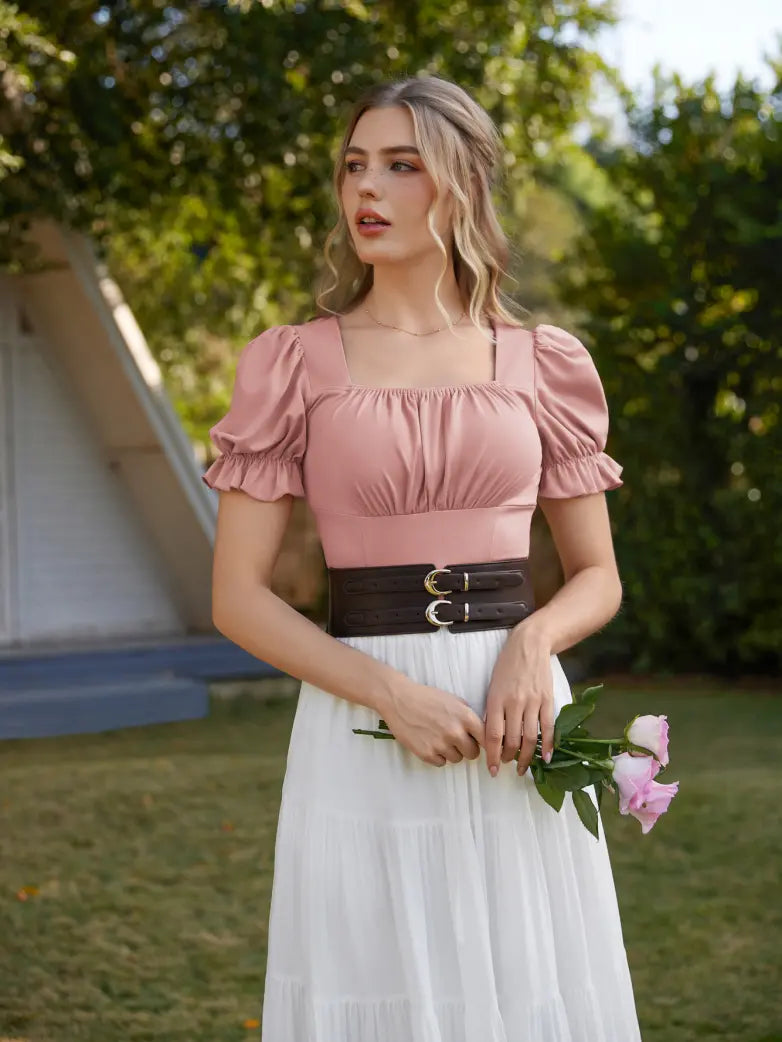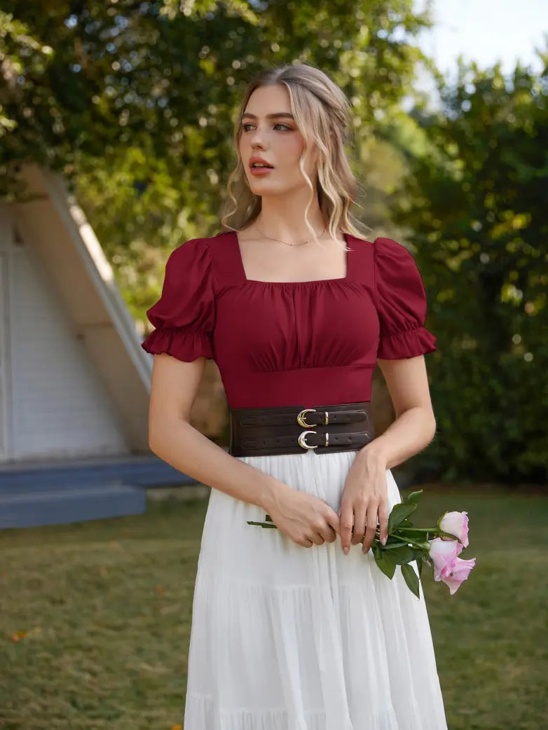 Make a statement in our Victorian Pleated Ruched Tops! Designed with Renaissance flair, these tops feature ruffled sleeves and a slim fit for a flattering look. Whether you're hitting the town or a Renaissance fair, these tops will elevate your outfit and show off your unique style. (No corset required!)