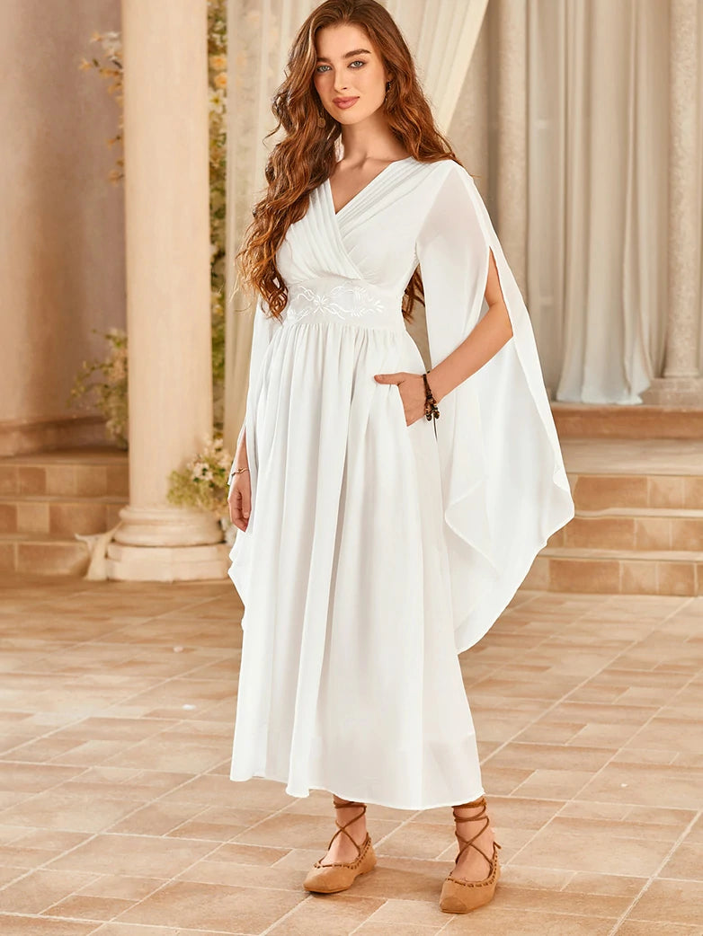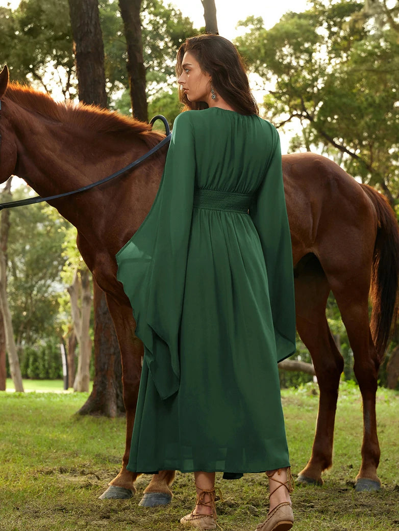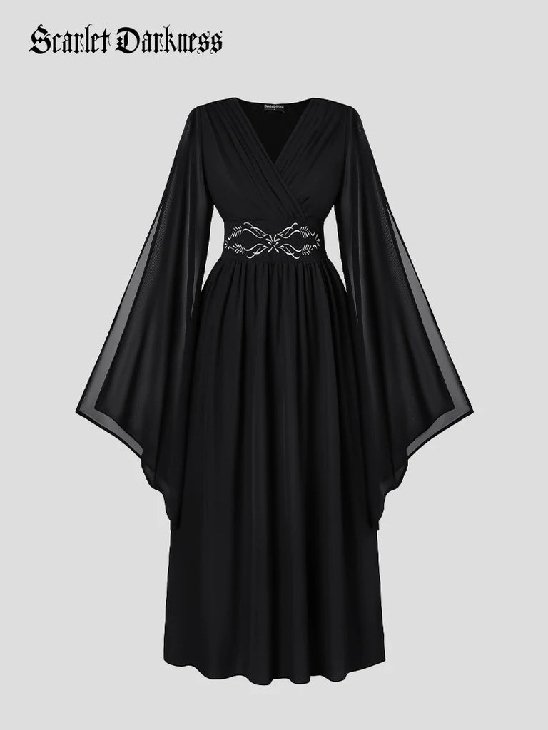 Scarlet Darkness Women Renaissance Chiffon Maxi Dress with Pockets