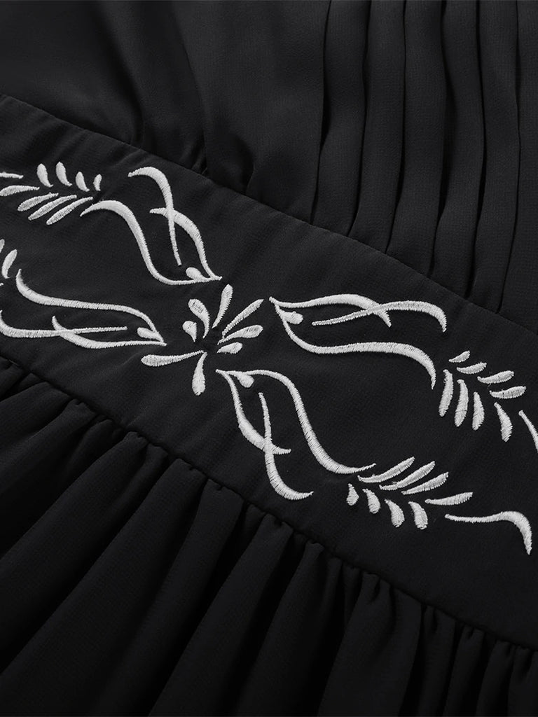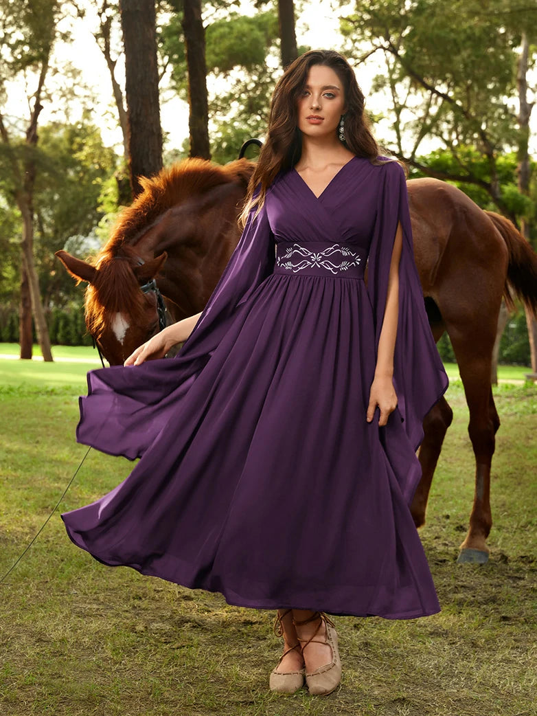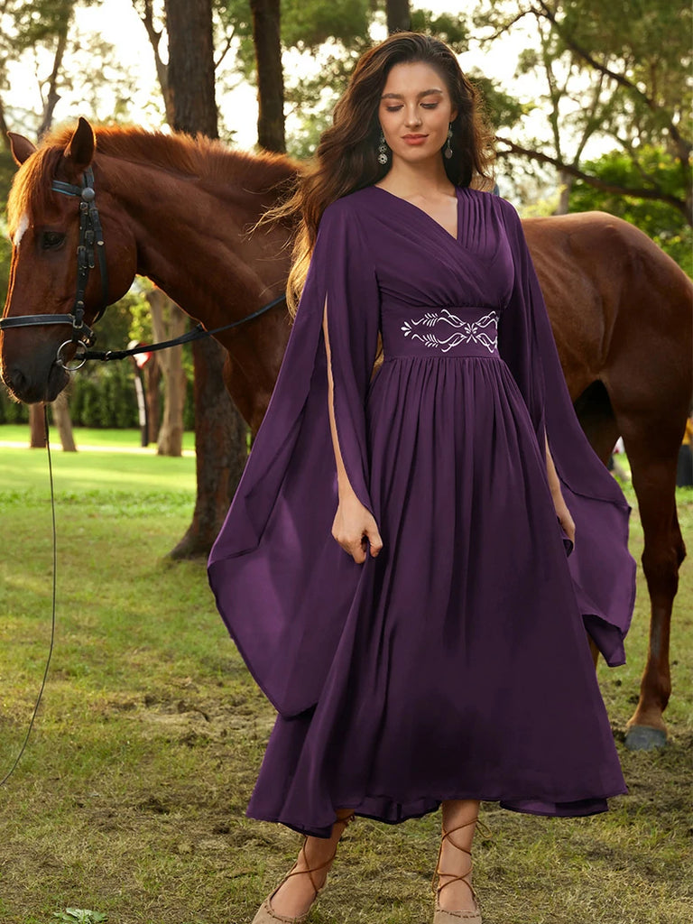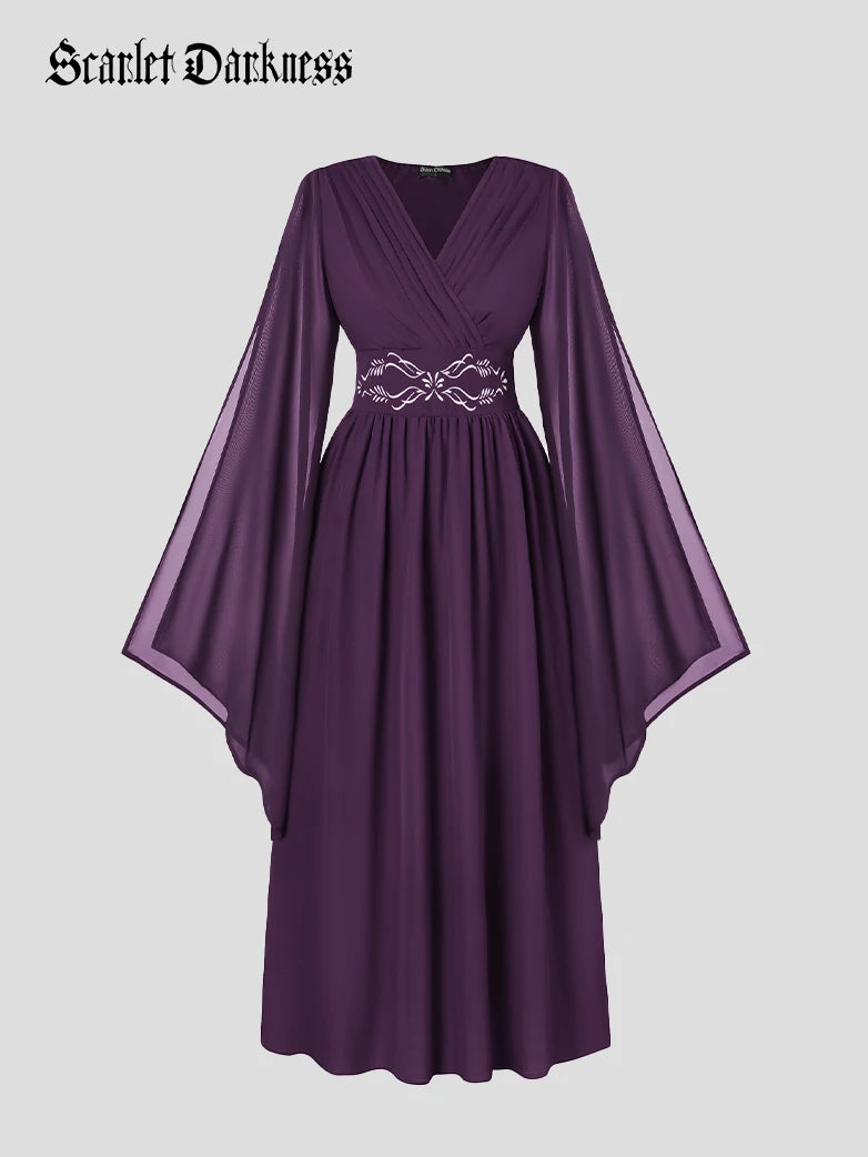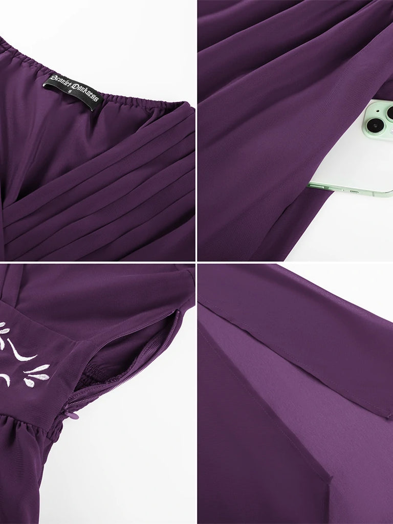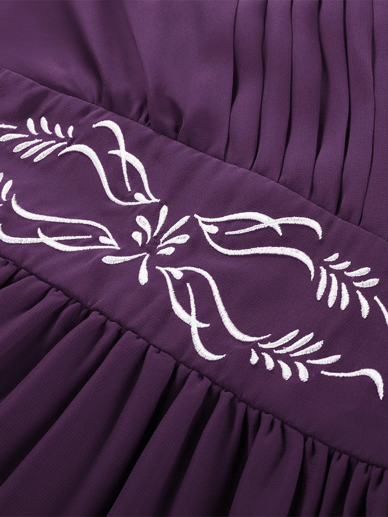 Renaissance Purple Embroidered Chiffon Pockets Dress