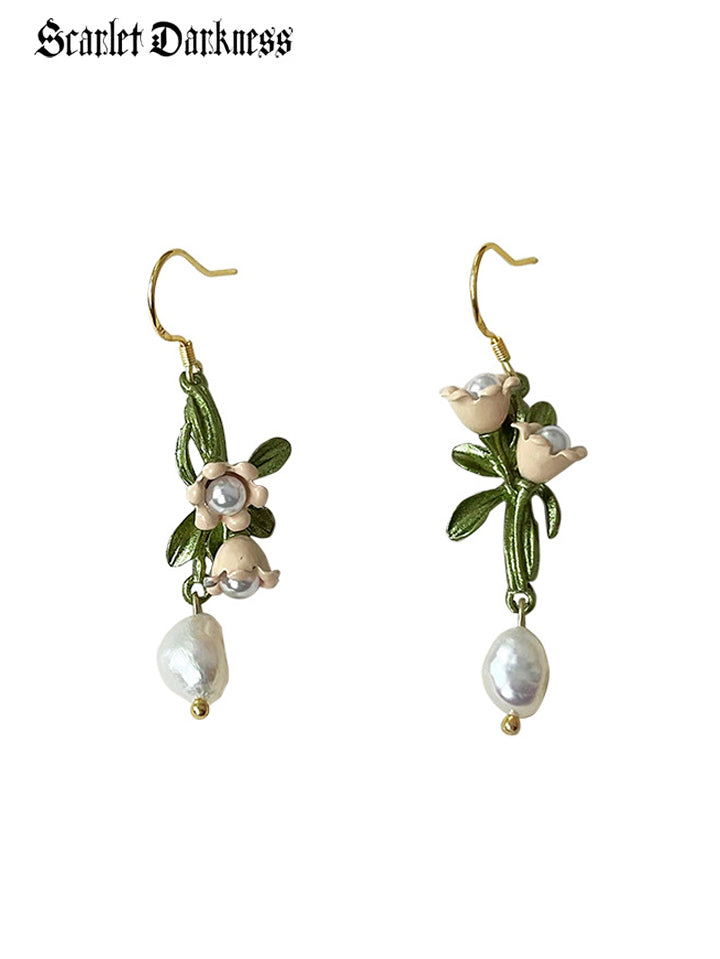 Scarlet Darkness Guardian of Dawn Asymmetrical lily of the valley earrings