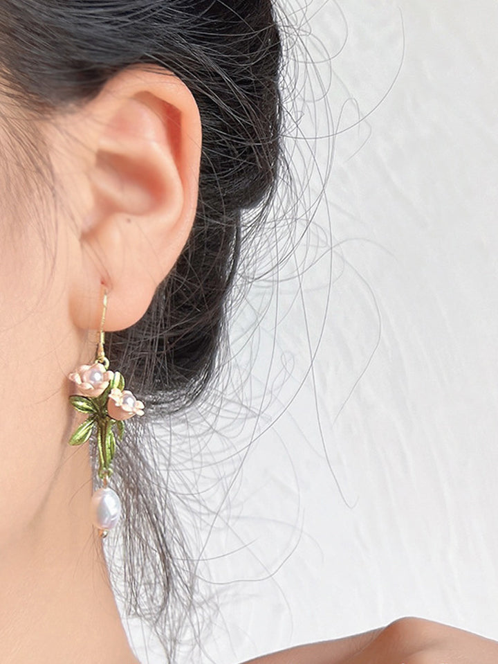Delicate, poetic, and softly luminous—these Guardian of Dawn Asymmetrical Lily of the Valley Earrings capture the first-light magic of morning dew. With one longer bell-flower drop and one shorter companion piece, the mismatched pair creates an artful, modern balance that’s perfect for weddings, garden parties, photoshoots, and everyday romantic looks.