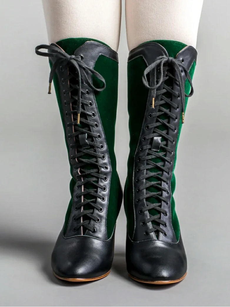 Crafted from luxurious velvet and supple leather, these boots blend dark elegance with undeniable edge. The commanding heel adds drama and confidence to your silhouette, while the gothic aesthetic ensures you'll stand out from the crowd.