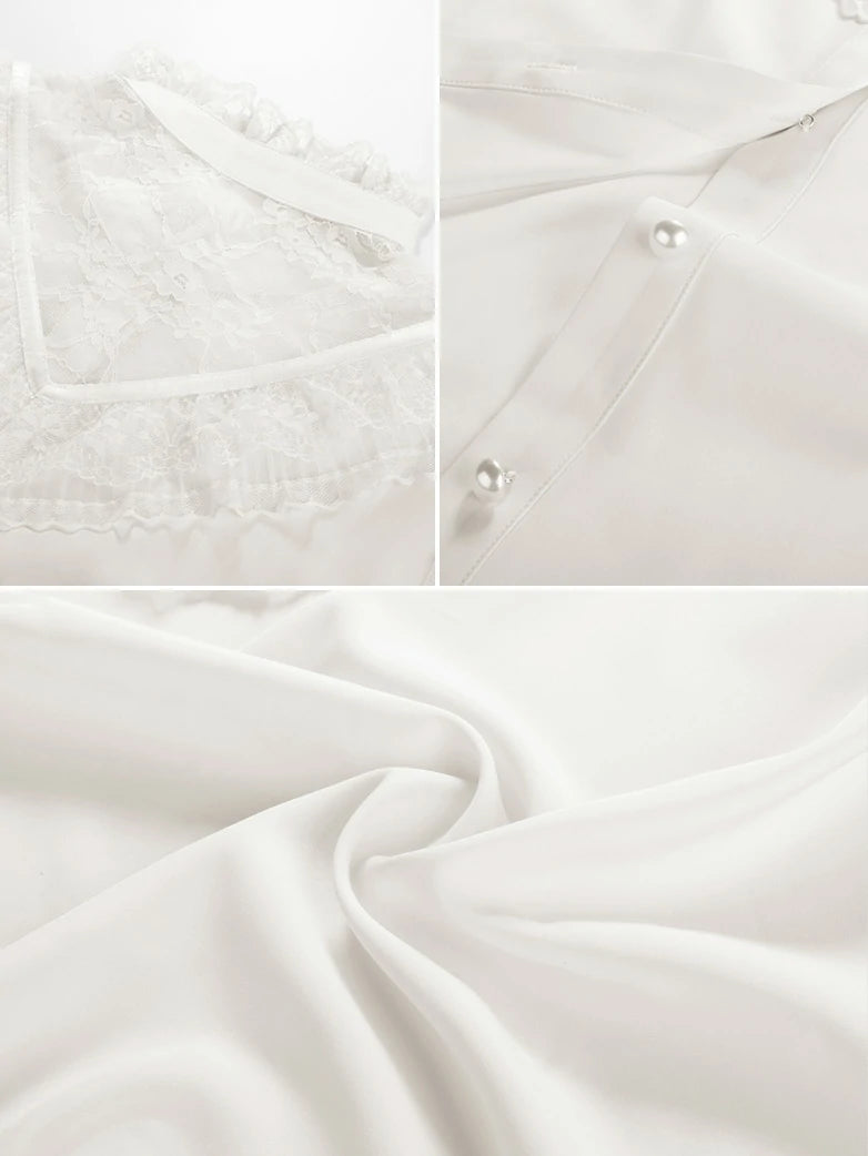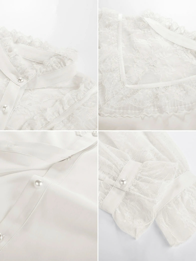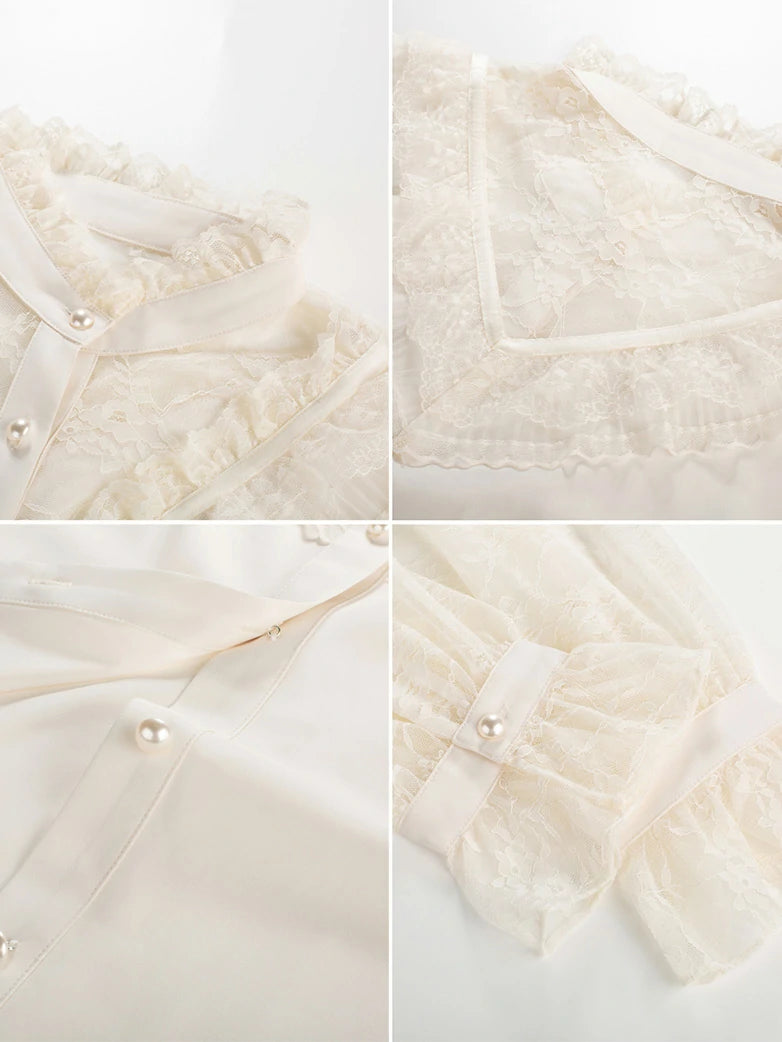 Victorian Lace Patchwork Stand Collar Shirt Tops