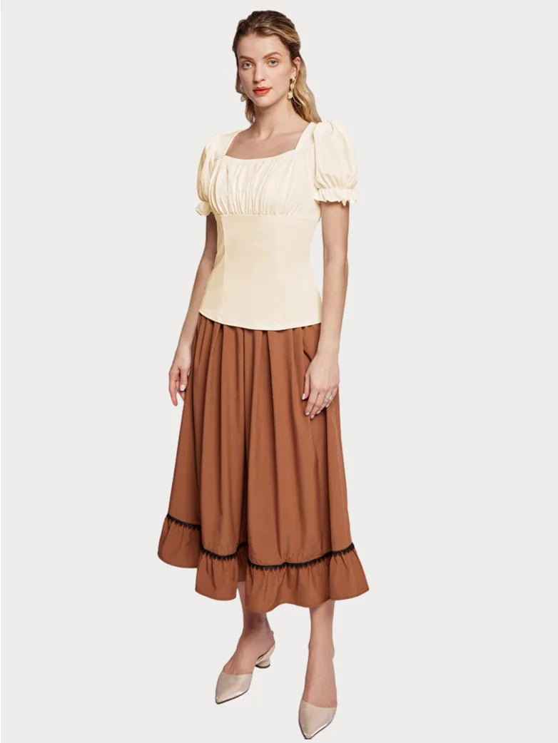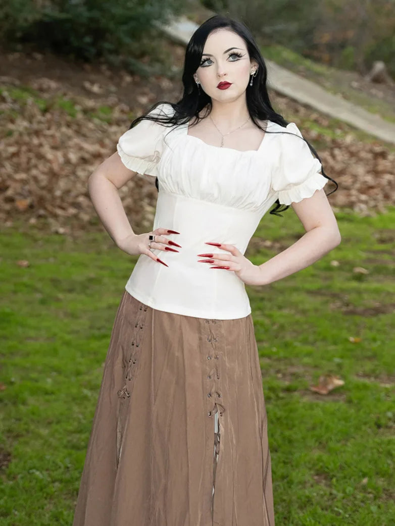 Make a statement in our Victorian Pleated Ruched Tops! Designed with Renaissance flair, these tops feature ruffled sleeves and a slim fit for a flattering look. Whether you're hitting the town or a Renaissance fair, these tops will elevate your outfit and show off your unique style. (No corset required!)