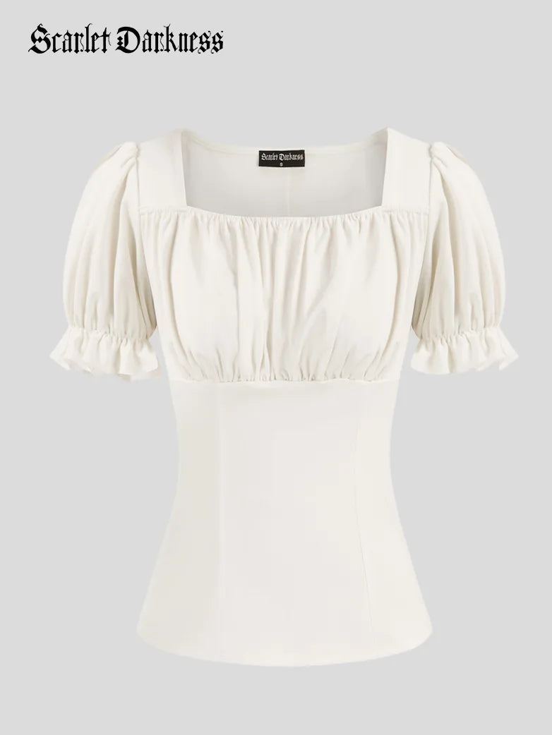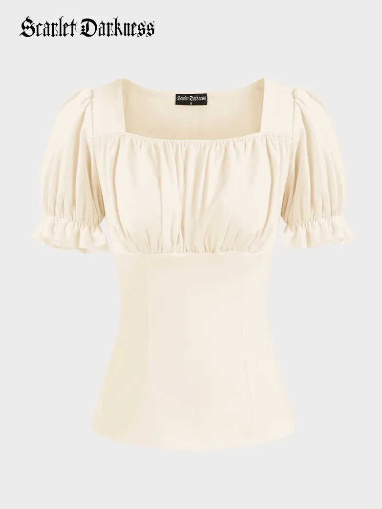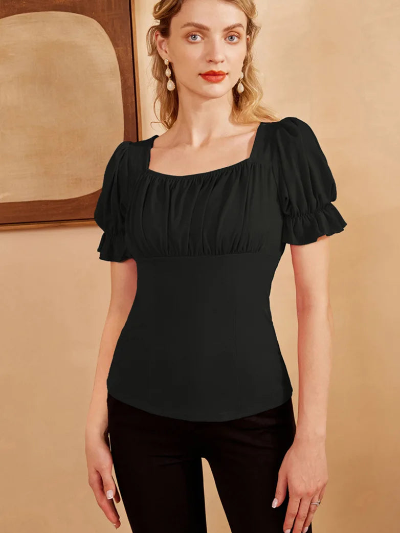 Renaissance Square Neck Slim Fit Short Sleeve Tops