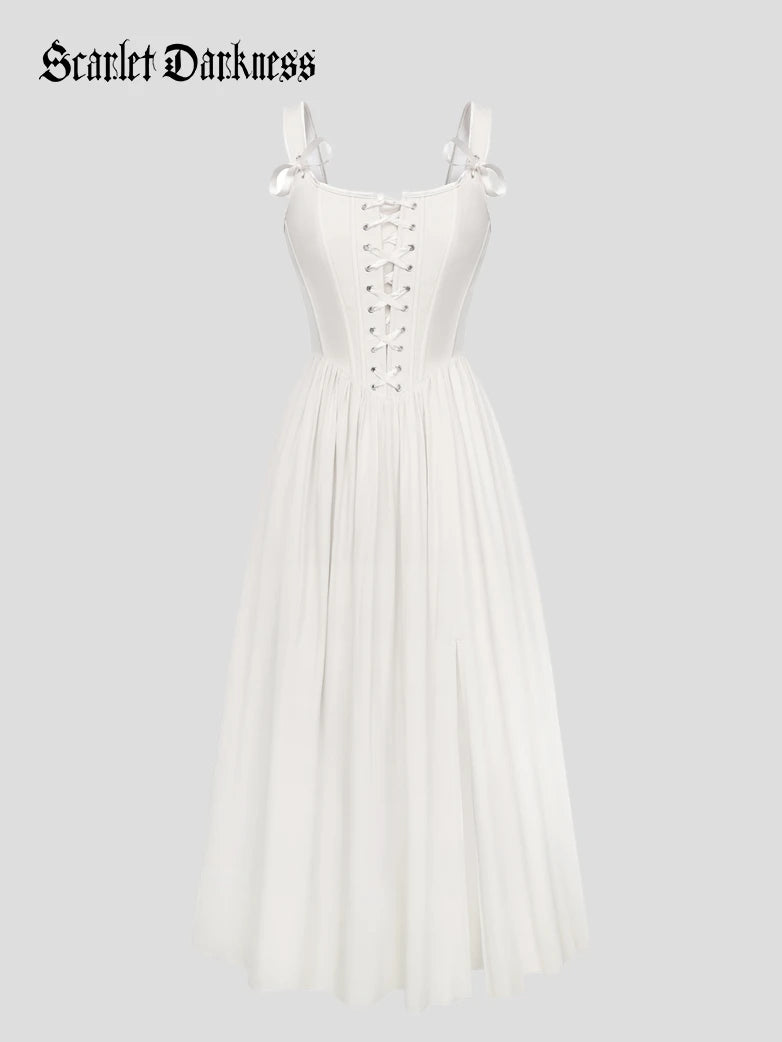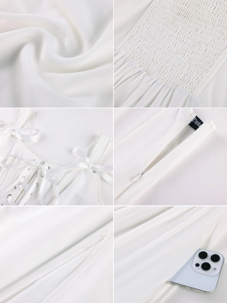 Drawing inspiration from retro corset aesthetics, the design incorporates a herringbone structure and a front center tie. The herringbone structure provides support, accentuating the clean lines of the waistline. The pointed waistline replicates the refined silhouette of vintage fashion, while the front center tie adds a touch of casual retro charm to the elegance.