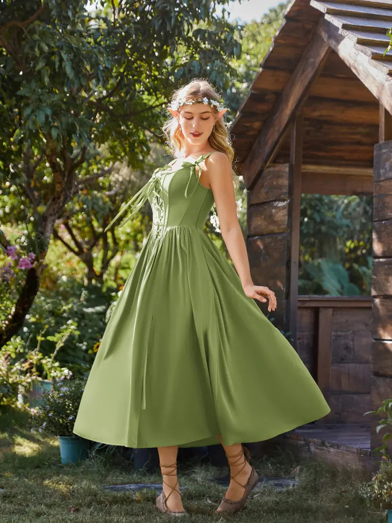 Fantasy Fairy Renaissance Corset Dress Spring Pocket Dress