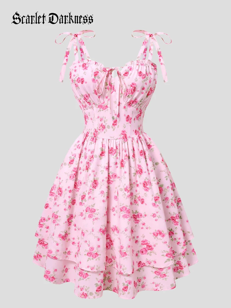 Introducing our Summer Casual Fitted Ditsy Dress from Scarlet Darkness's Spring 2026 collection: Eternal Bloom that brings Victorian tea party vibes to your wardrobe.