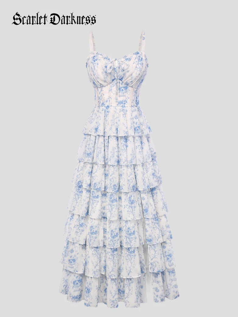 Scarlet Darkness Women Disney Princes Bridgeton Cake Dress with 18 Bones