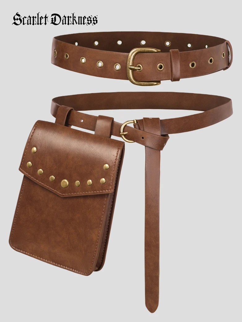 Scarlet Darkness Women Renaissance Waist Bag Belt 3pcs Set Wide Belt+Narrow Belt+Bag
