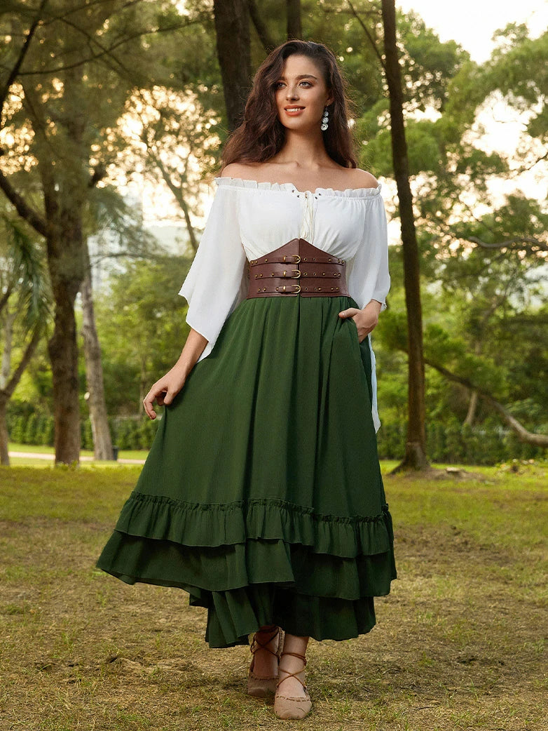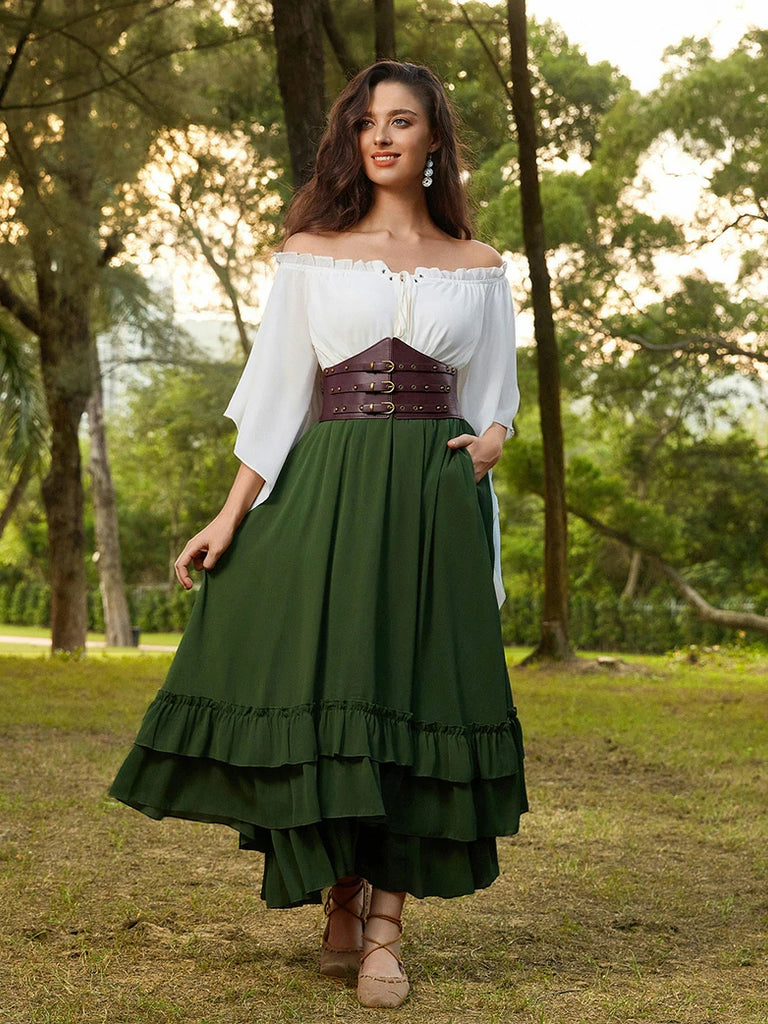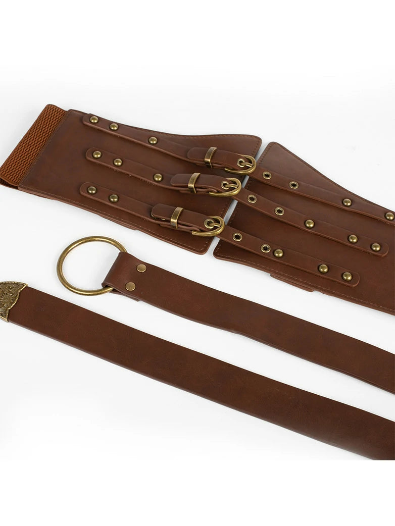 Scarlet Darkness Women Renaissance Belt 15cm PU+Elastic Waistband+3.3cm Waist Belt Set