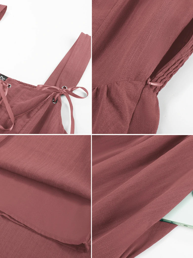 Scarlet Darkness Women Renaissance Maxi Dress Wide Shoulder Straps Lace-up Bodice Flared A-Line Dress with Pockets