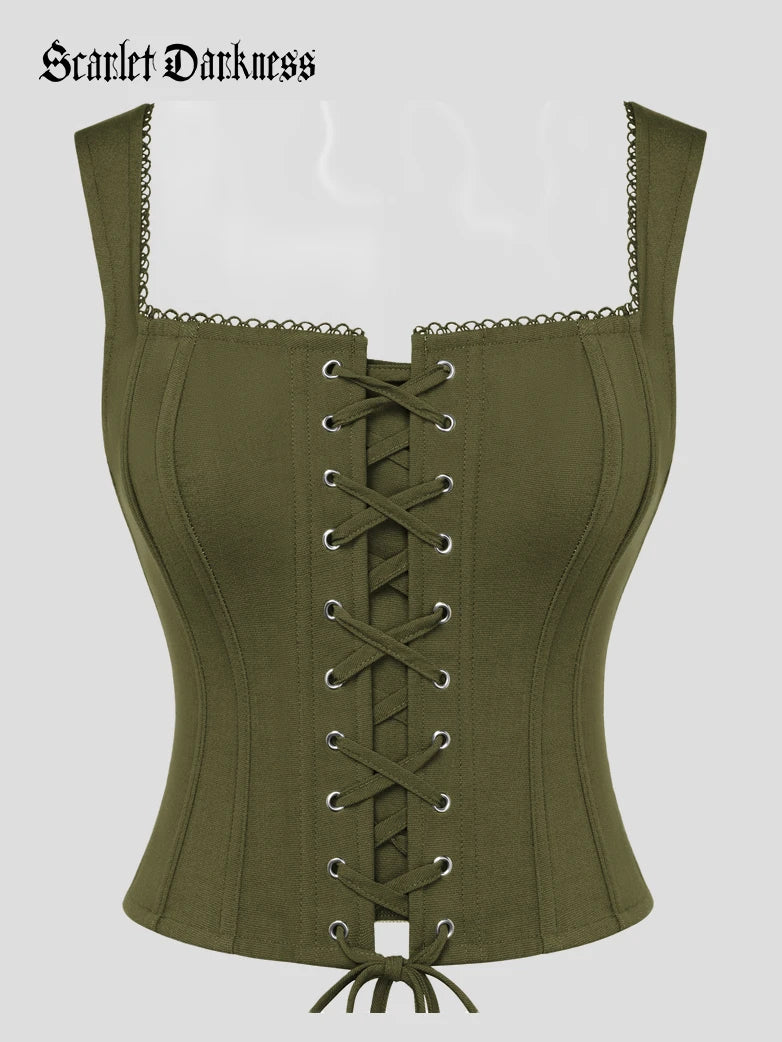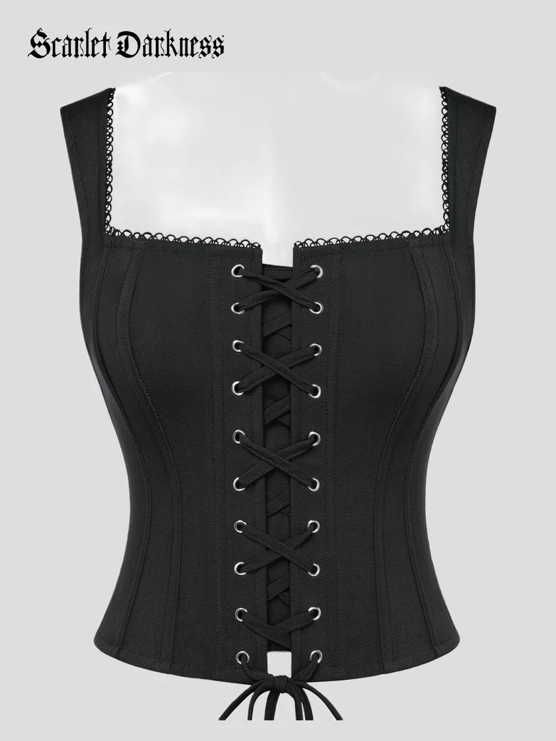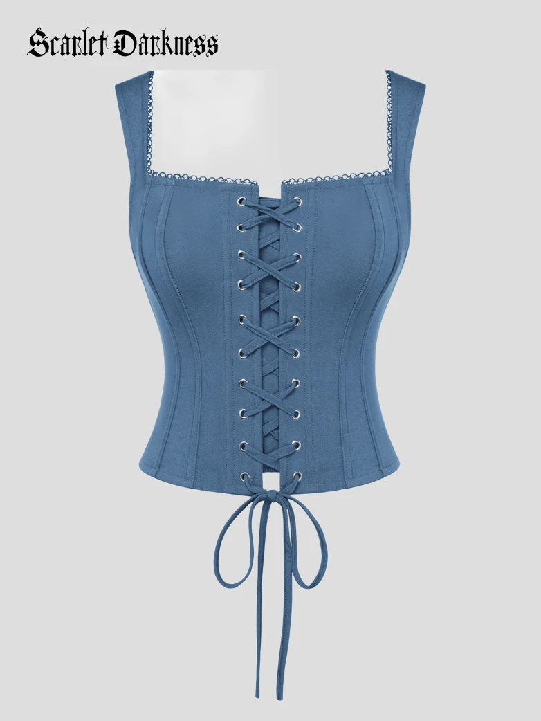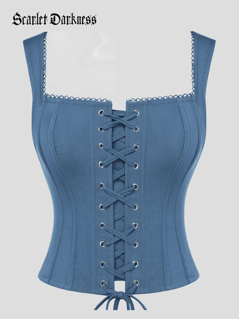 Scarlet Darkness Women Renaissance Rural Corset Top with 14 Bones and Lace-up
