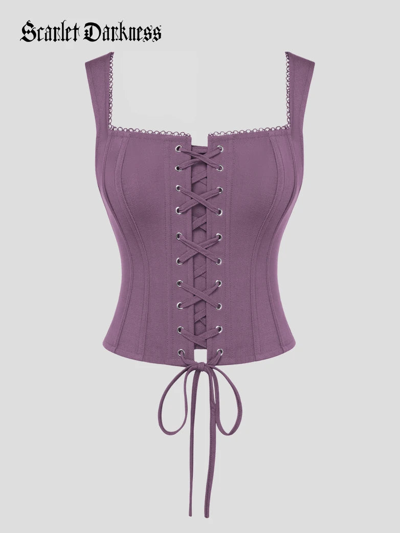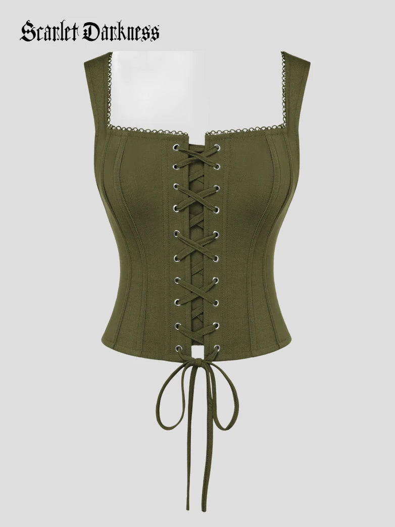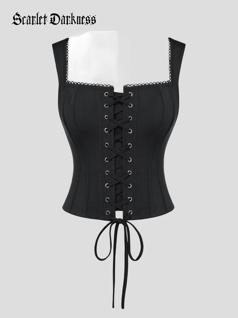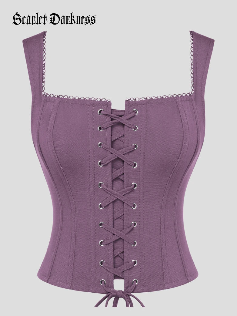 Scarlet Darkness Women Renaissance Rural Corset Top with 14 Bones and Lace-up