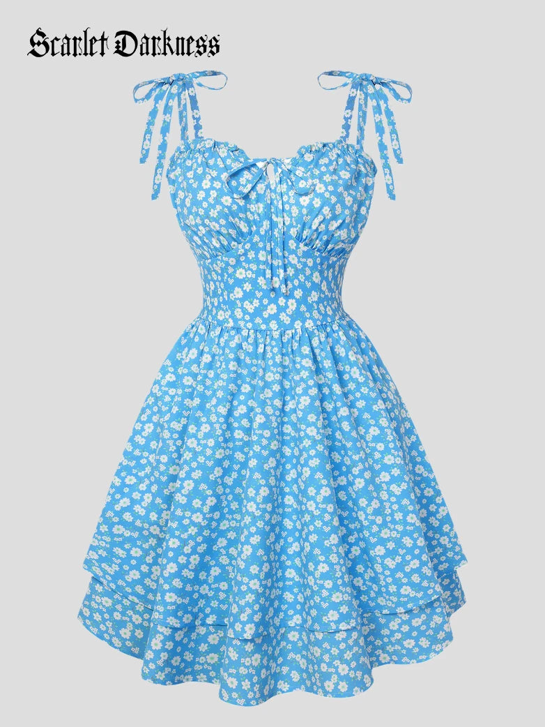 Introducing our Summer Casual Fitted Ditsy Dress from Scarlet Darkness's Spring 2026 collection: Eternal Bloom that brings Victorian tea party vibes to your wardrobe.