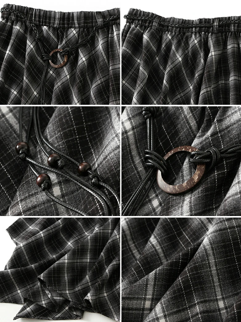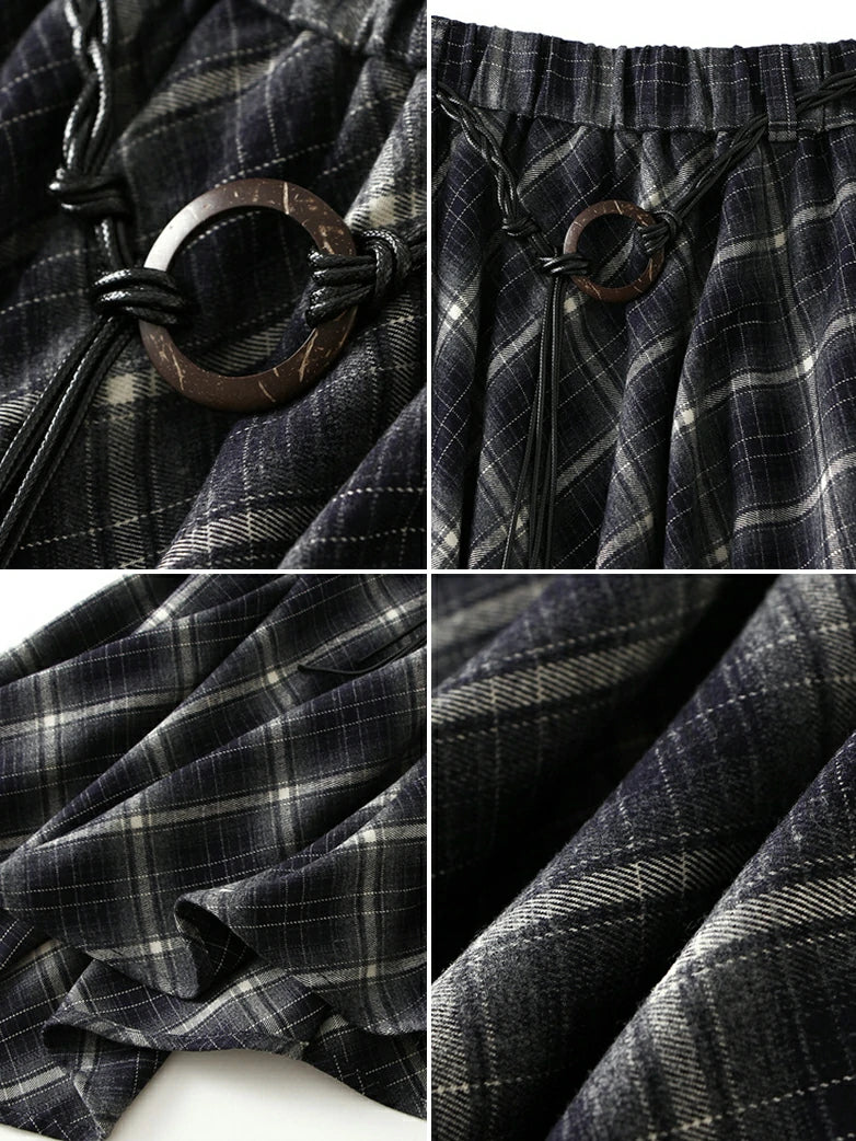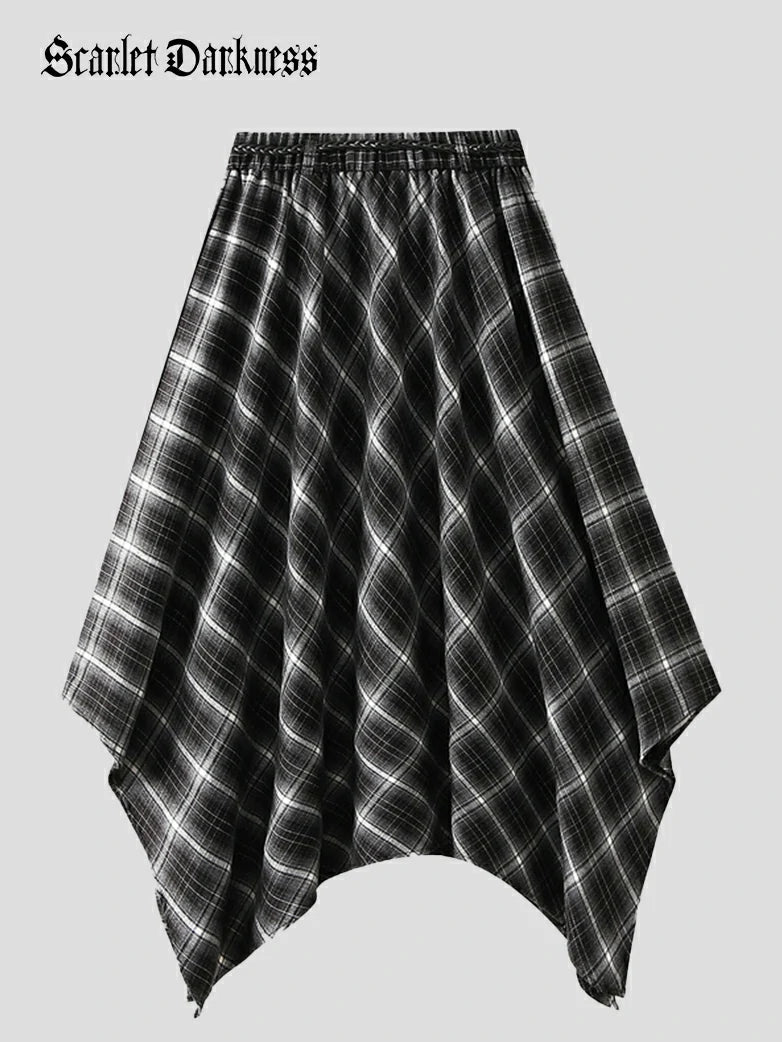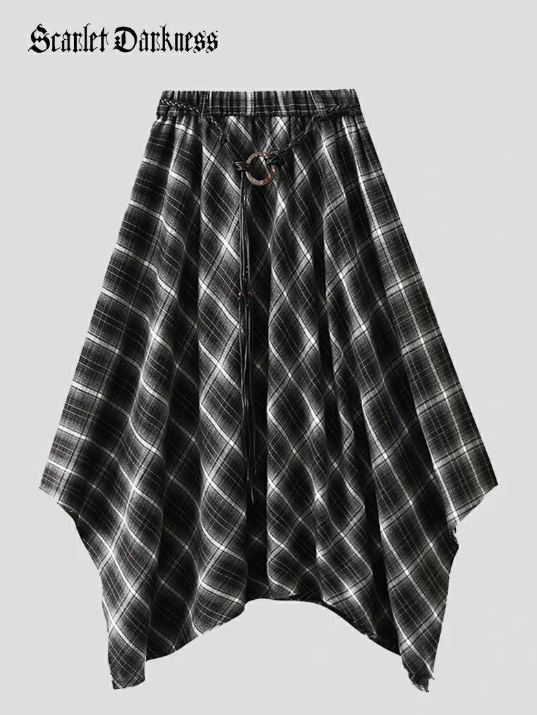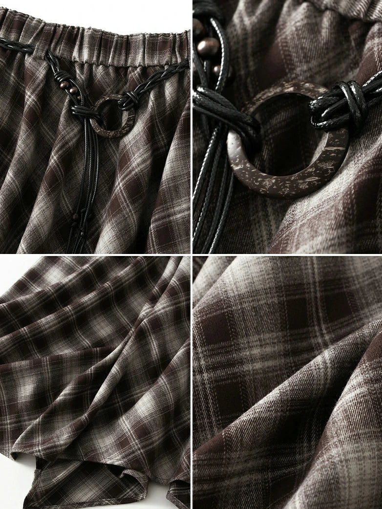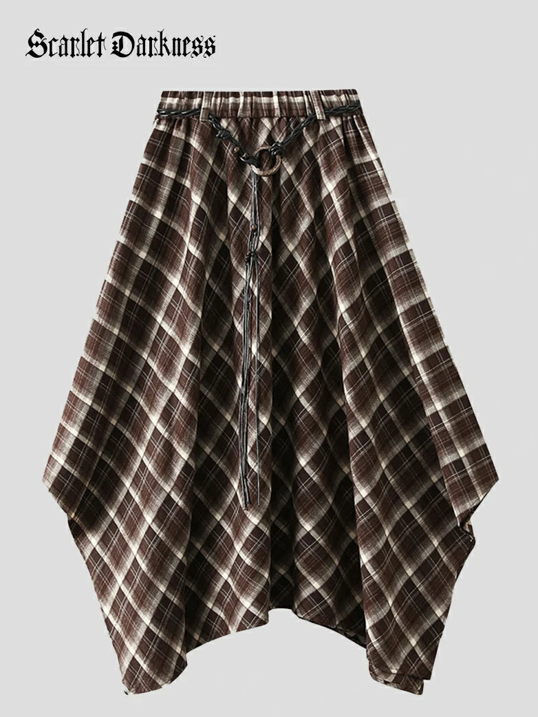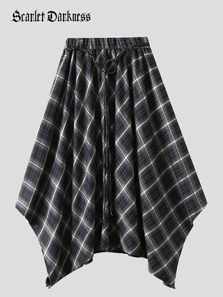 2025 Retro Plaid Irregular Midi Skirt with Tie