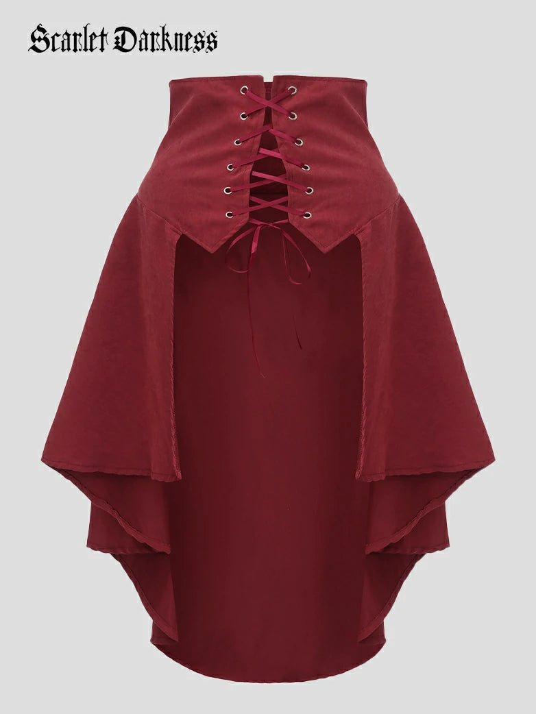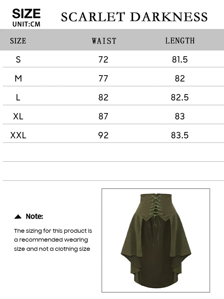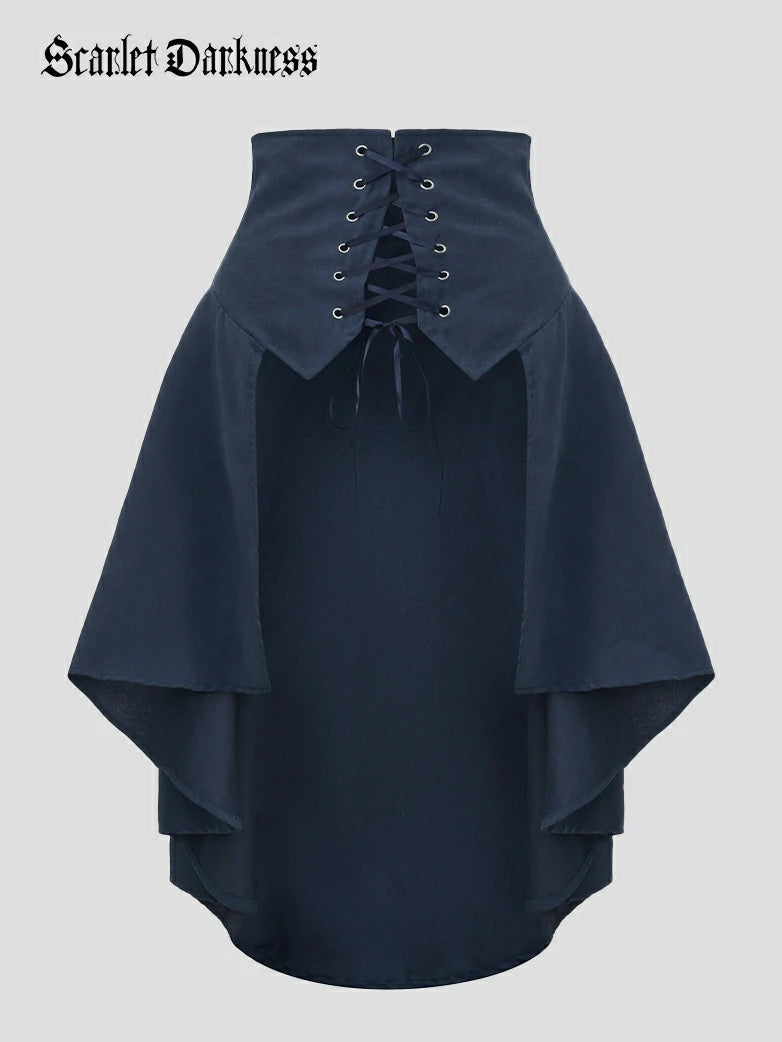 Medieval High-Waisted Skirt with Irregular Hem and Tie