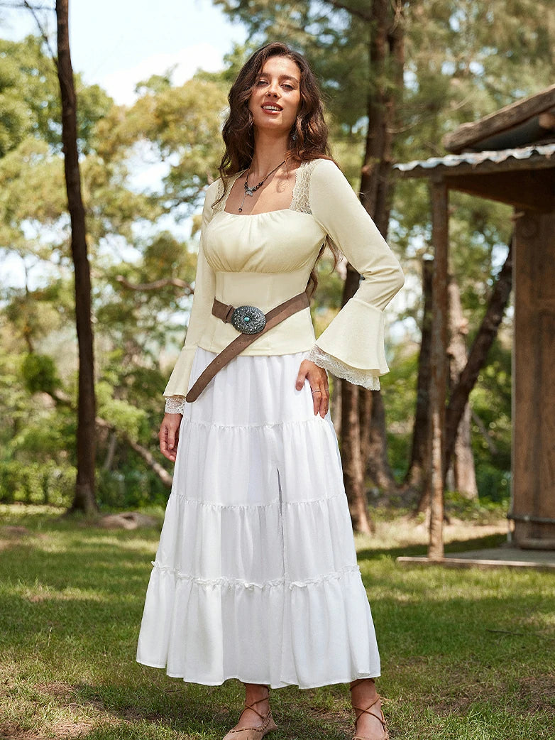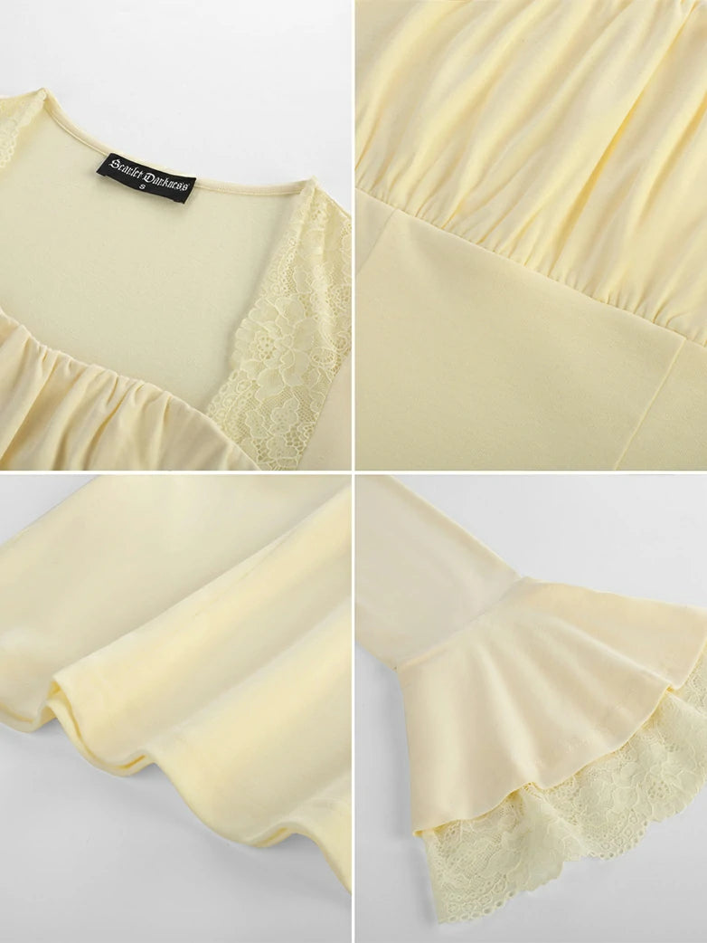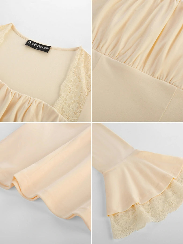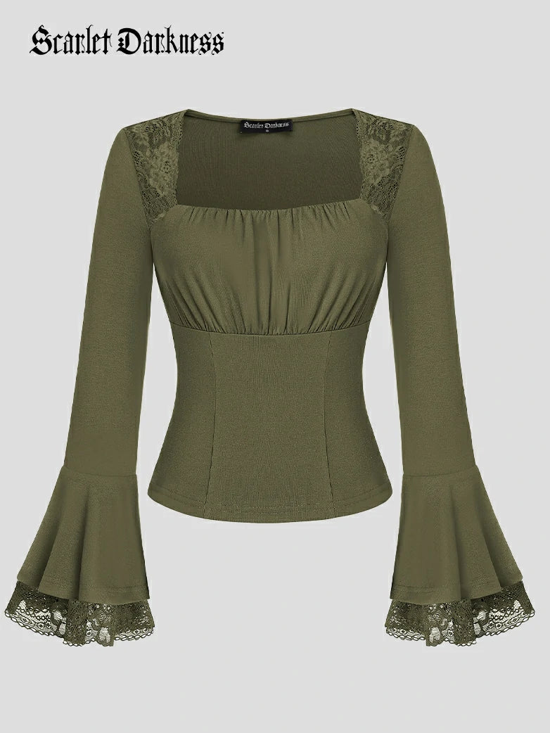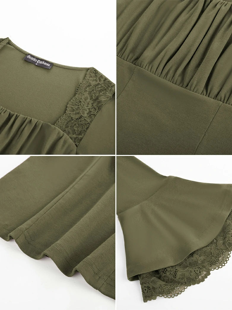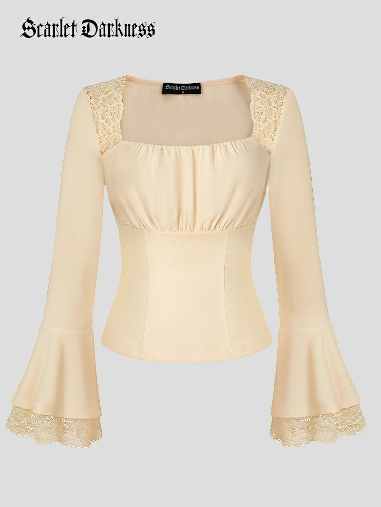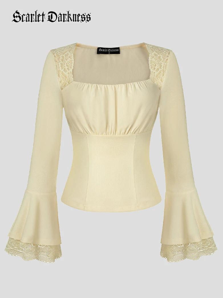 Victorian Lace Patchwork Trapezoidal neck Tops