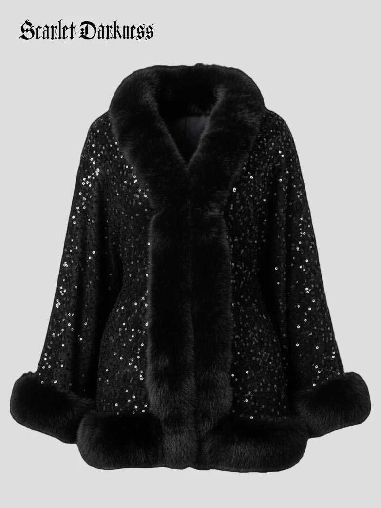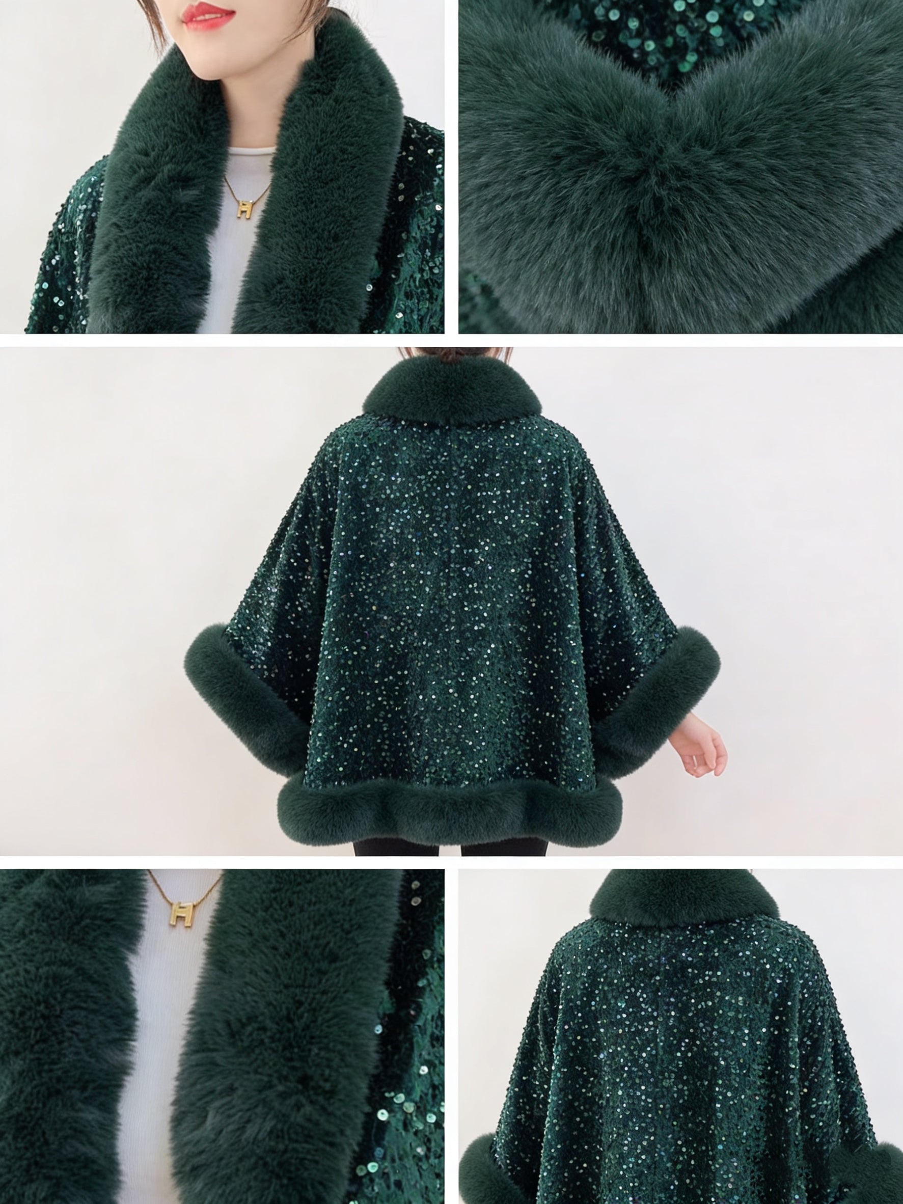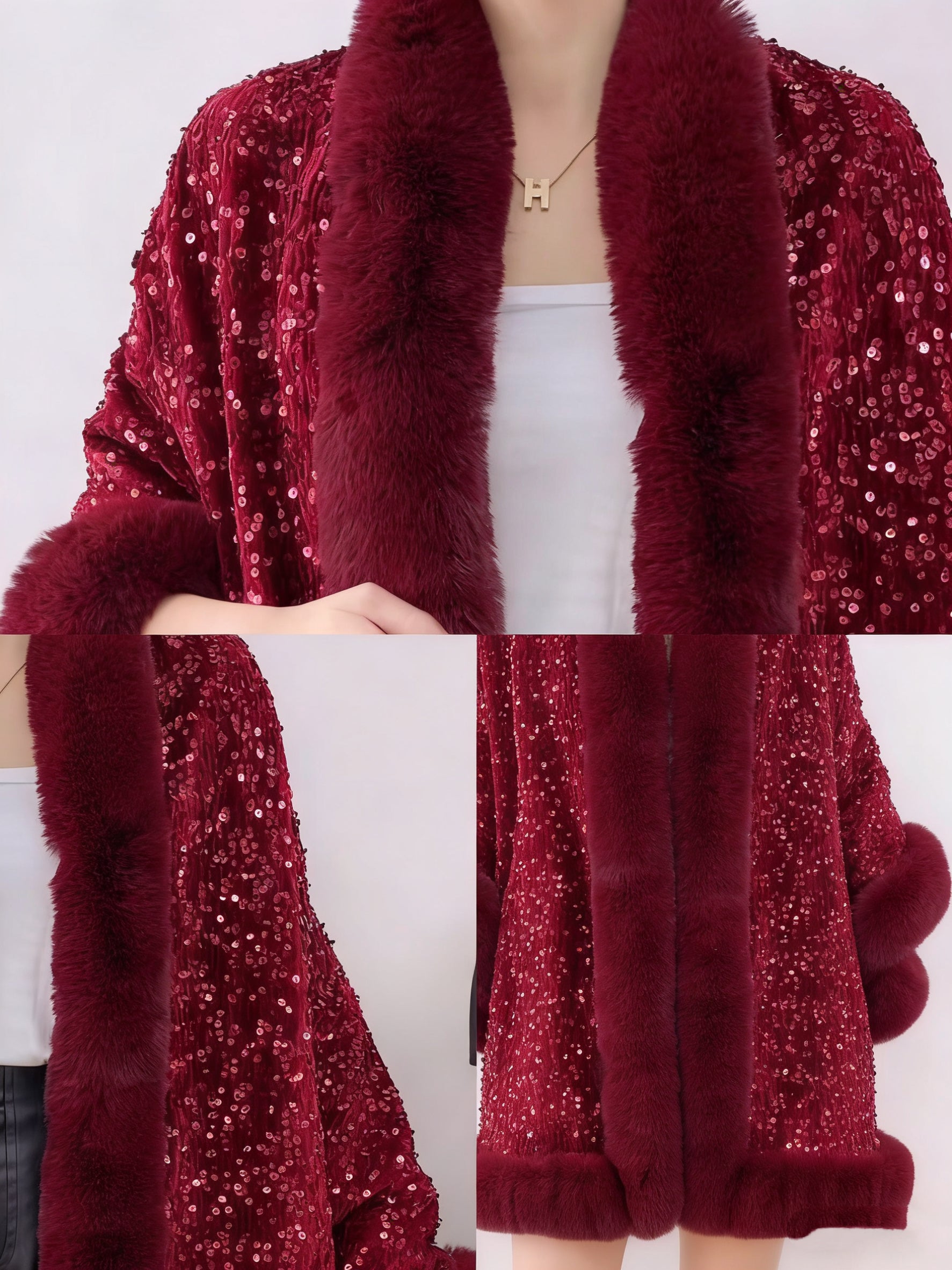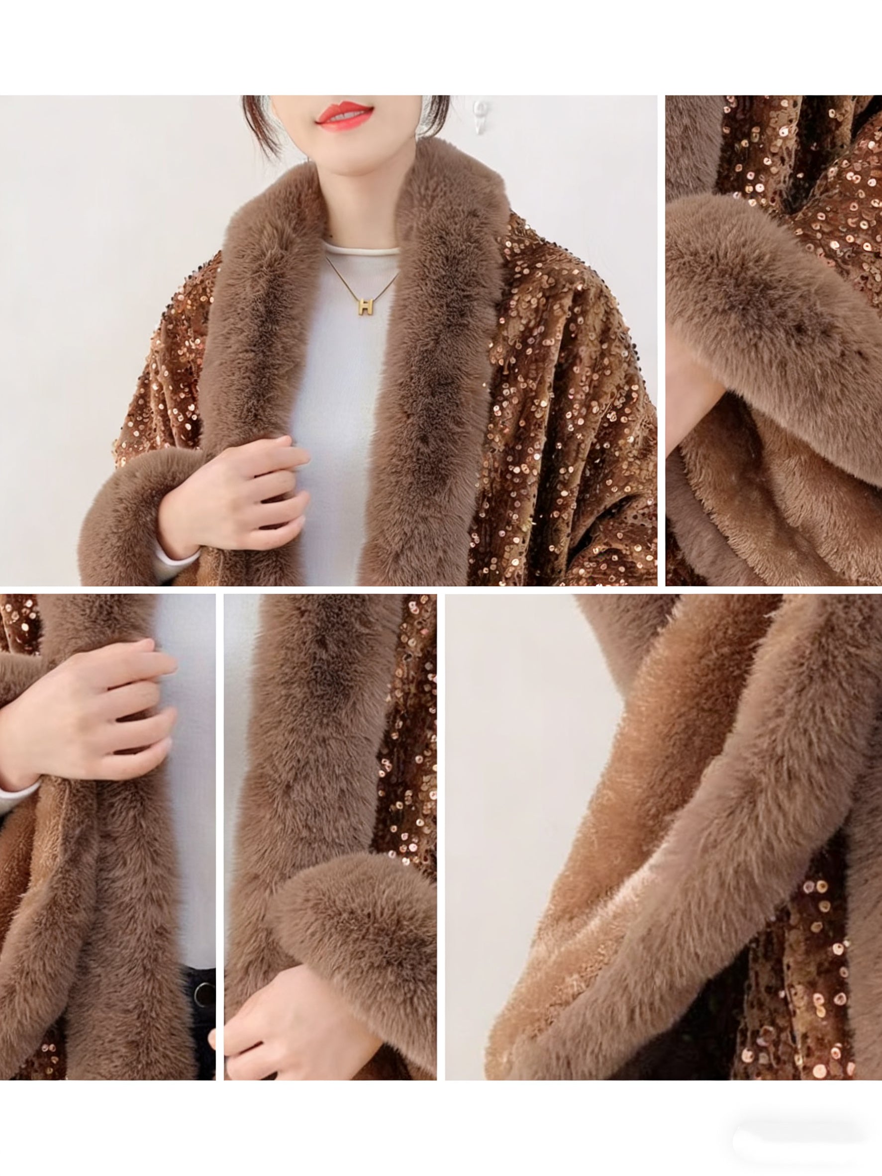 Winter Limited Edition: Thick Fur-Collar Sequins Shawl Coat