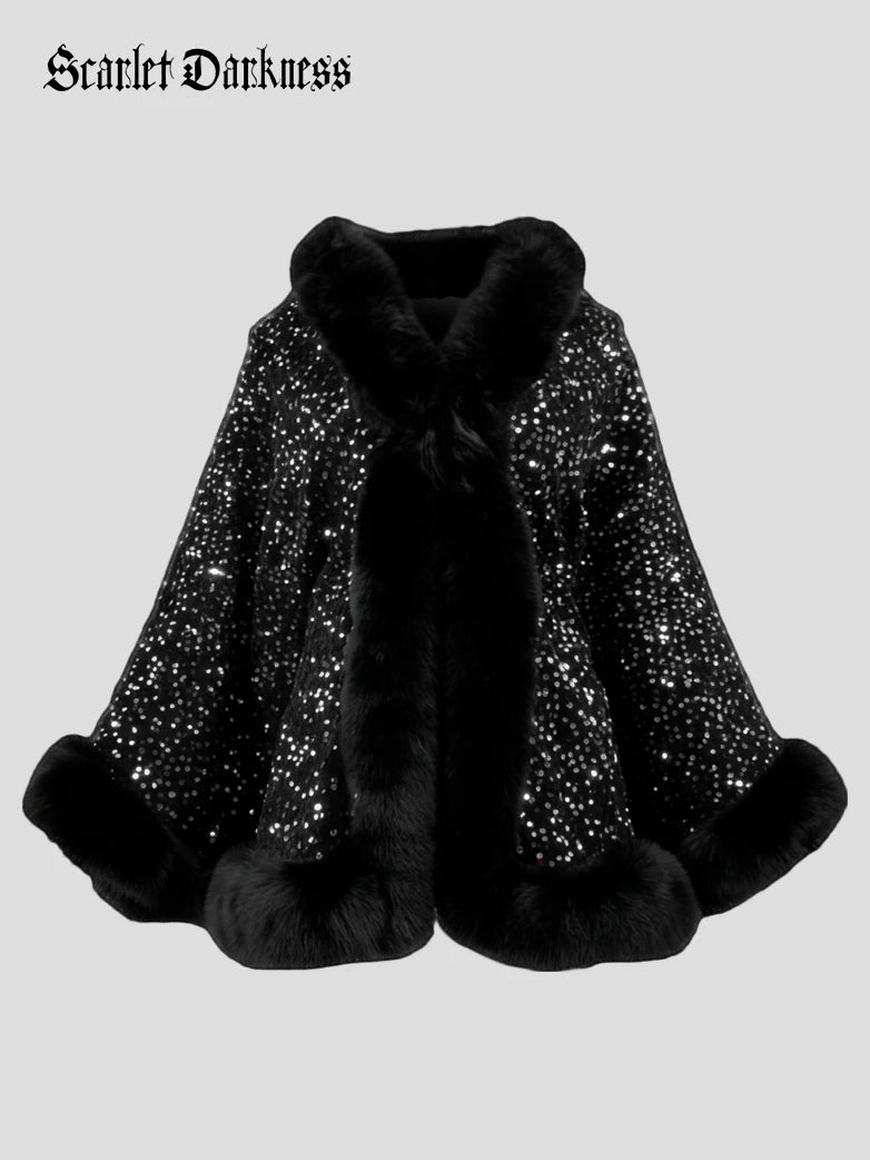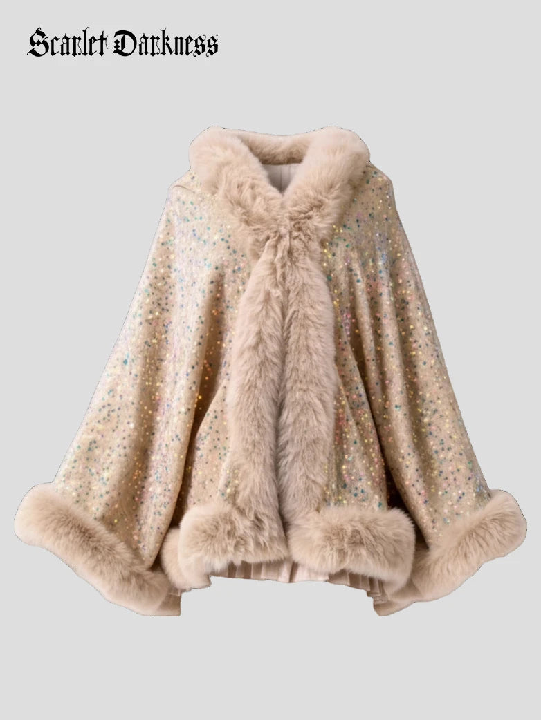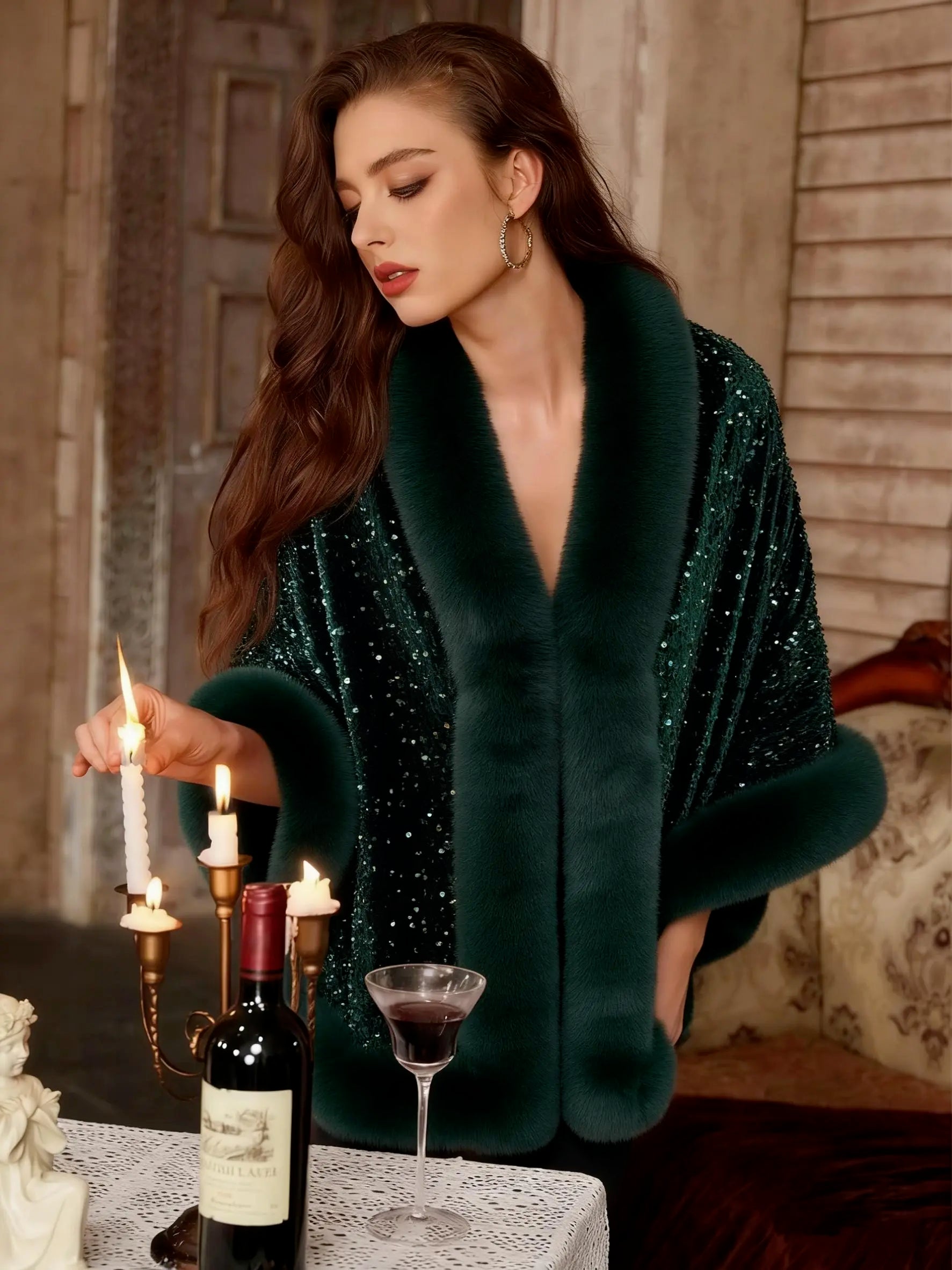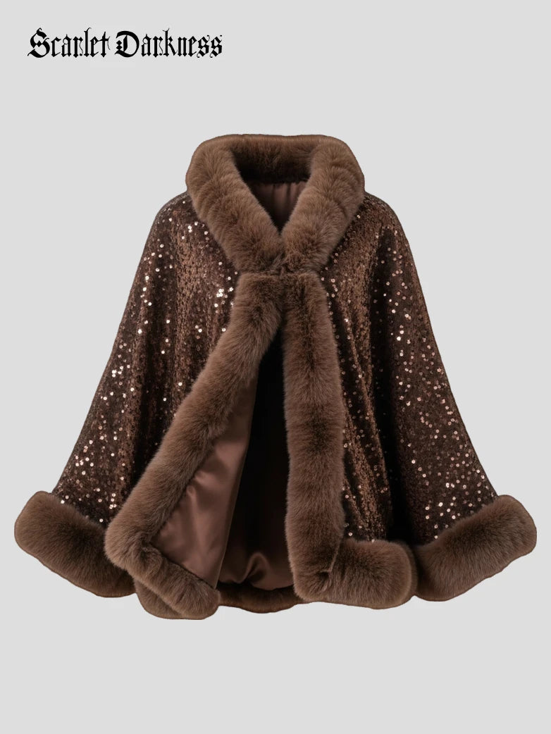 Winter Limited Edition: Thick Fur-Collar Sequins Shawl Coat