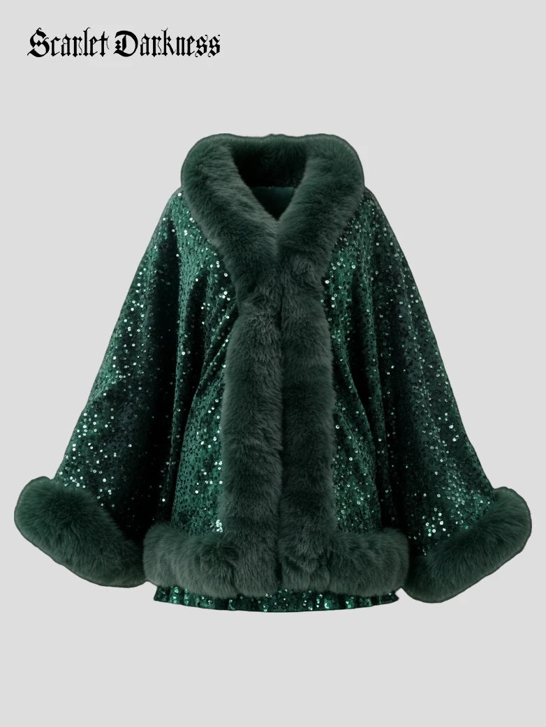 Opulent, warm, and party-perfect—this Winter Limited Edition Thick Fur-Collar Sequins Shawl Coat wraps you in plush comfort and glittering glamour. A sumptuous fur-look collar and shimmering sequined shawl-style overlay create an instant statement for holiday parties, winter weddings, New Year’s countdowns, and elegant city nights.