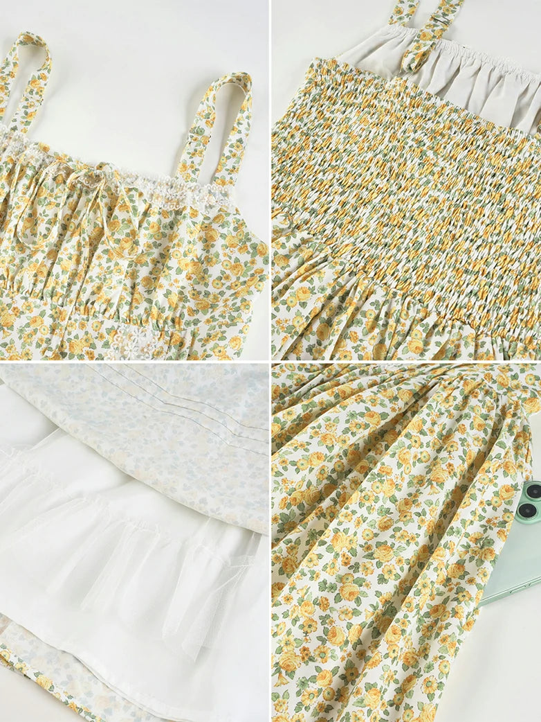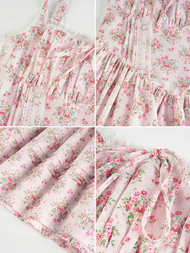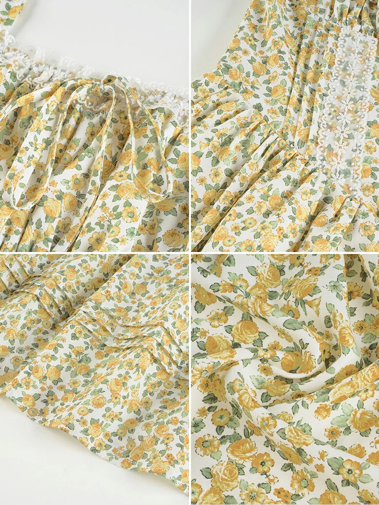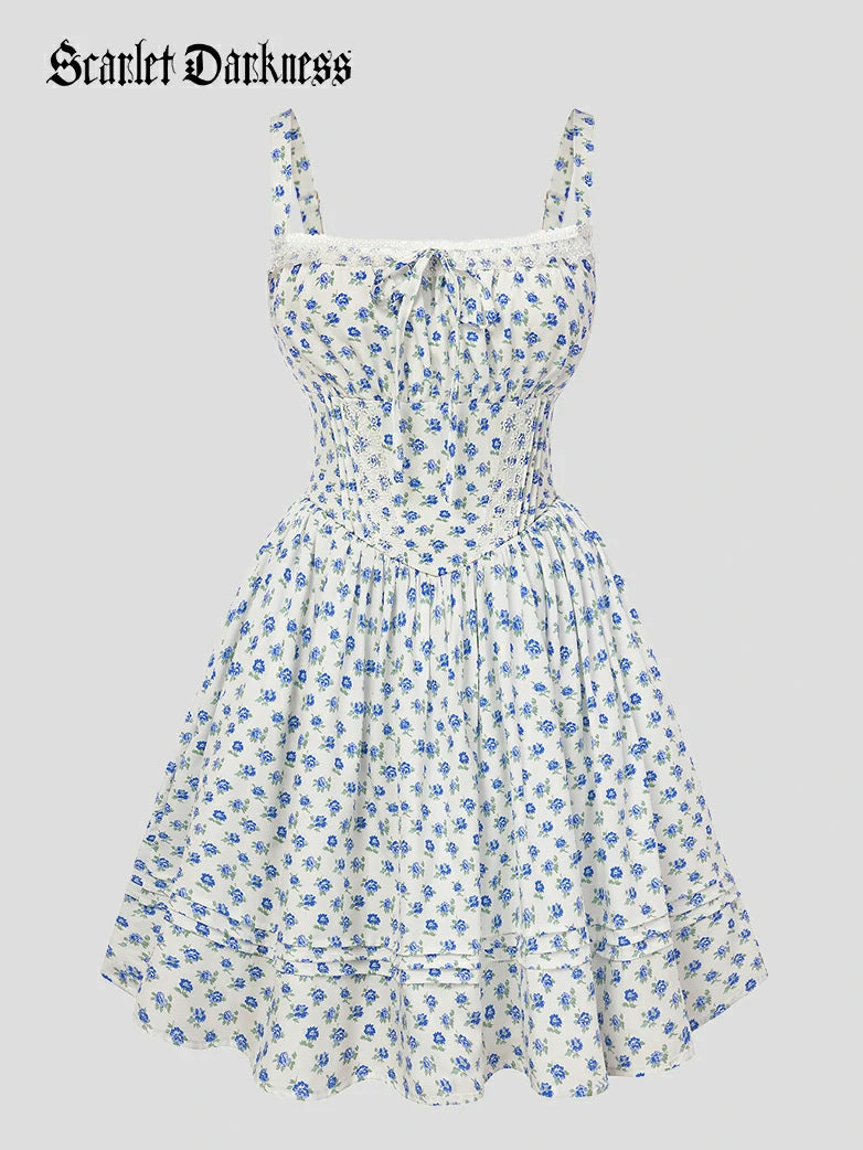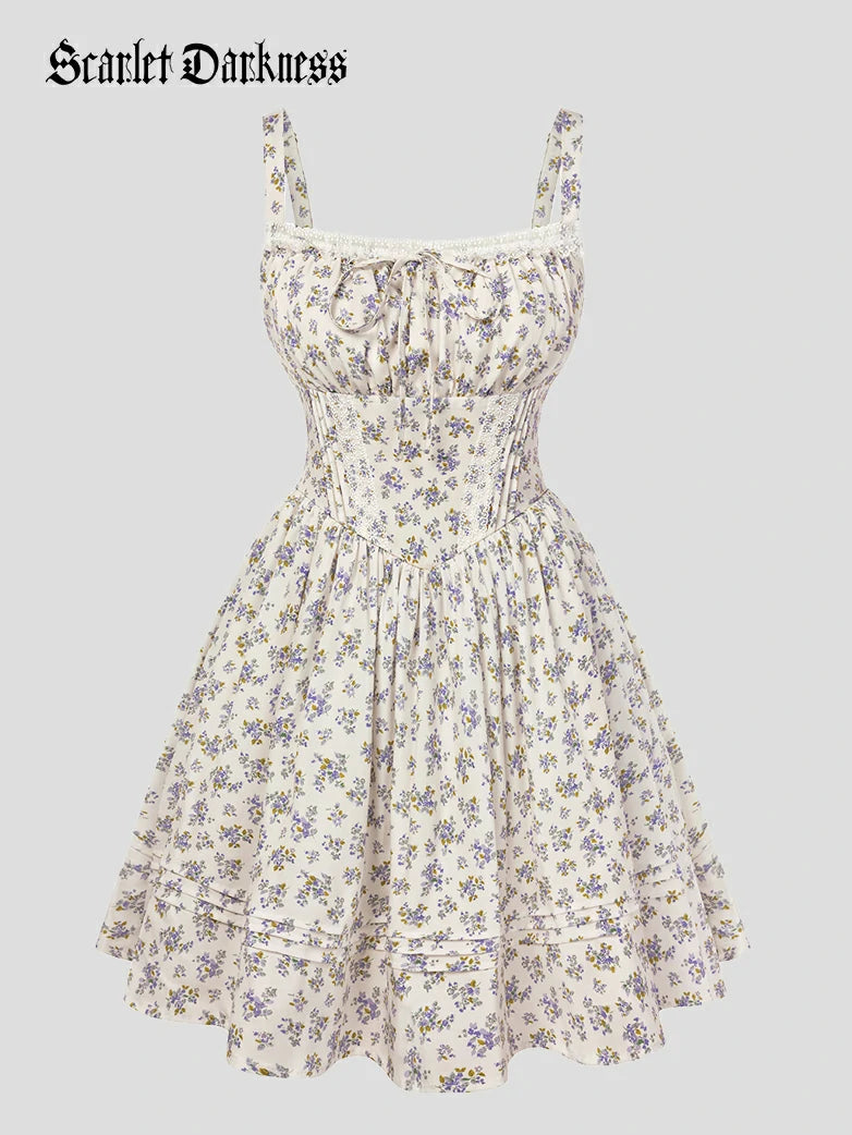 Victorian Puffy Corset Dress Sundress with Pockets