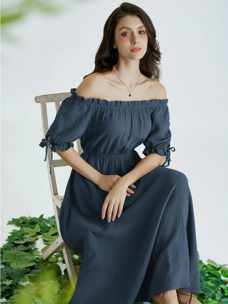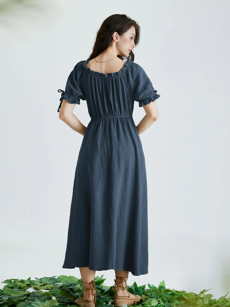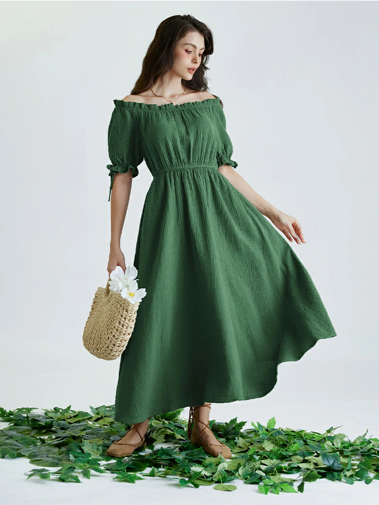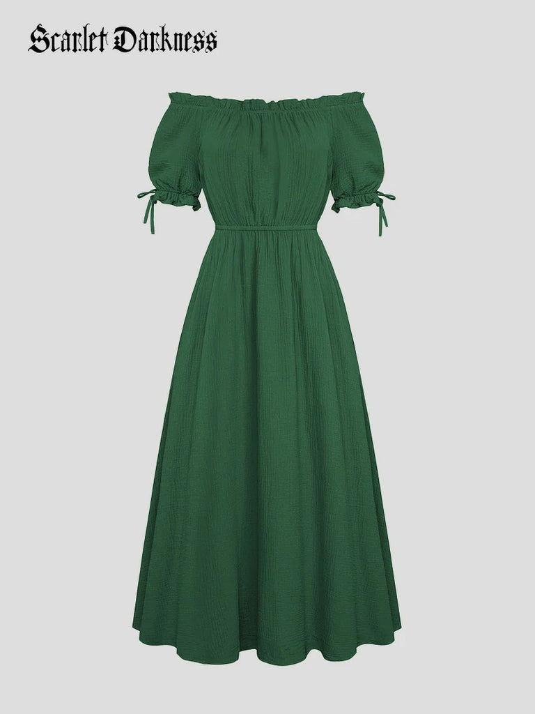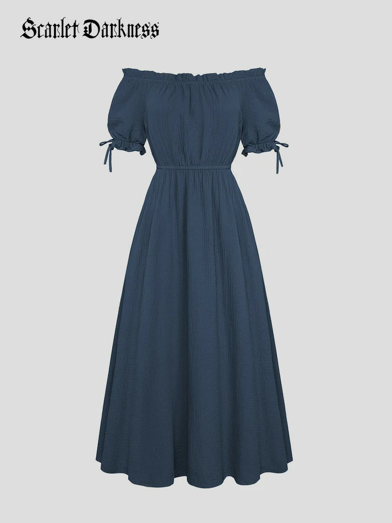 Scarlet Darkness Women Renaissance Pocket Dress Cotton Short Sleeve Off Shoulder A-Line Dress