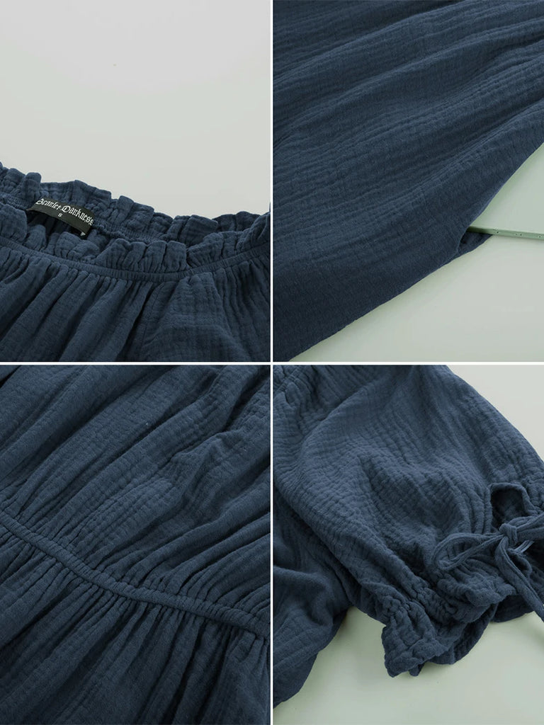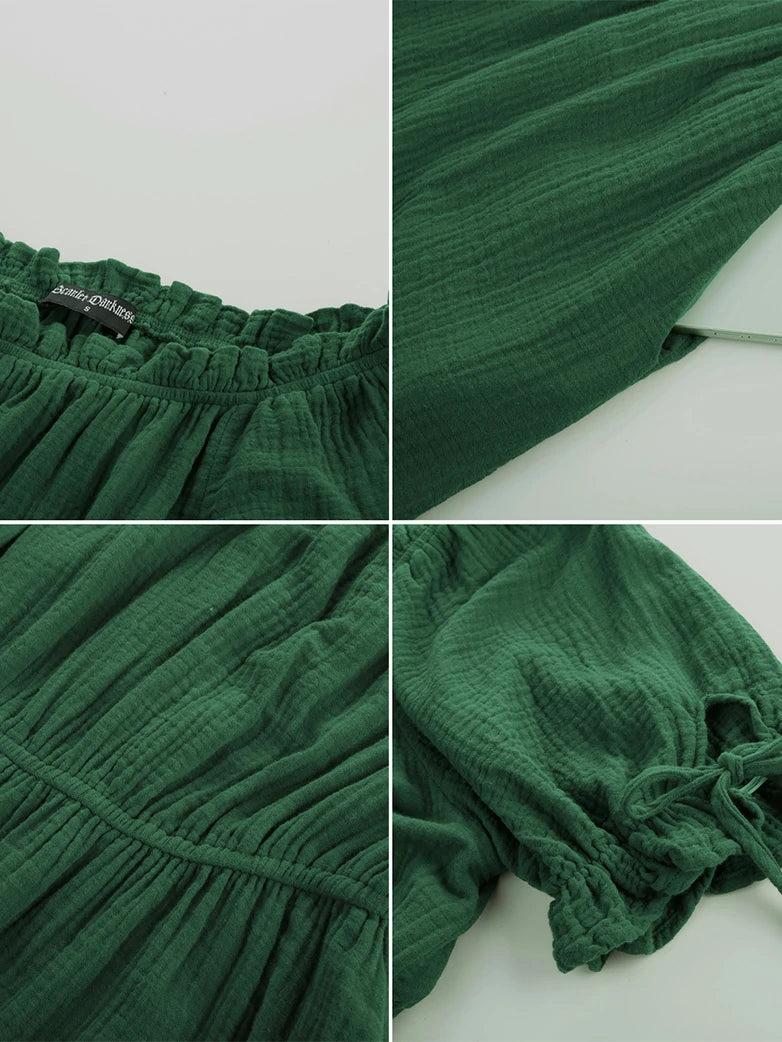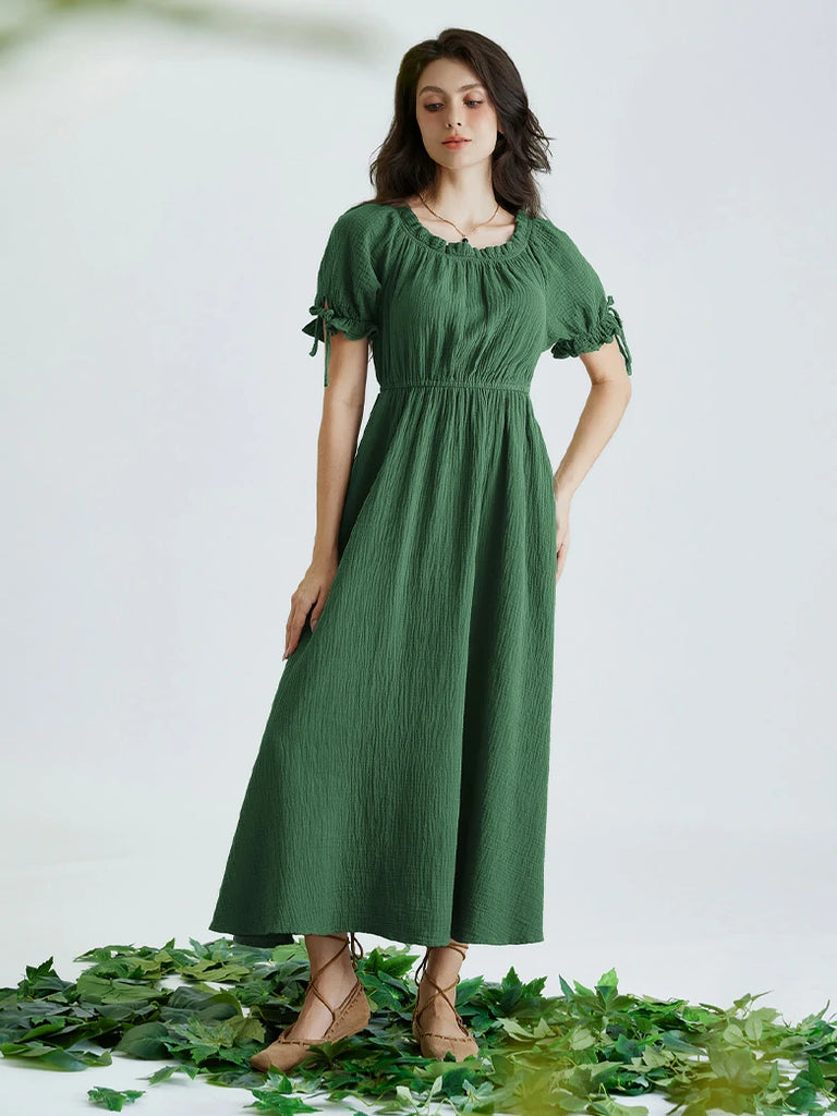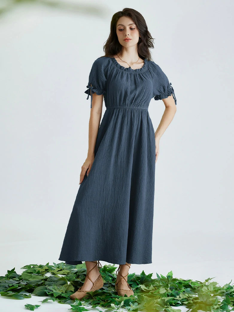 Scarlet Darkness Women Renaissance Pocket Dress Cotton Short Sleeve Off Shoulder A-Line Dress