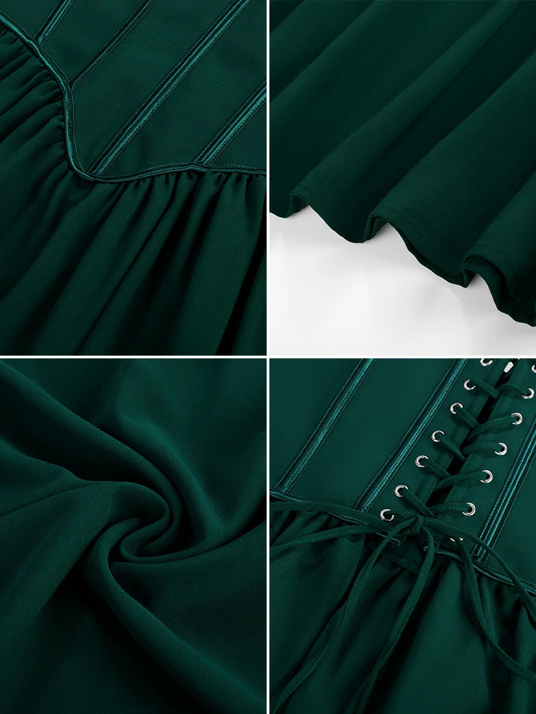 Scarlet Darkness Women Corset Style Bodice Maxi Dress for Party with Pockets